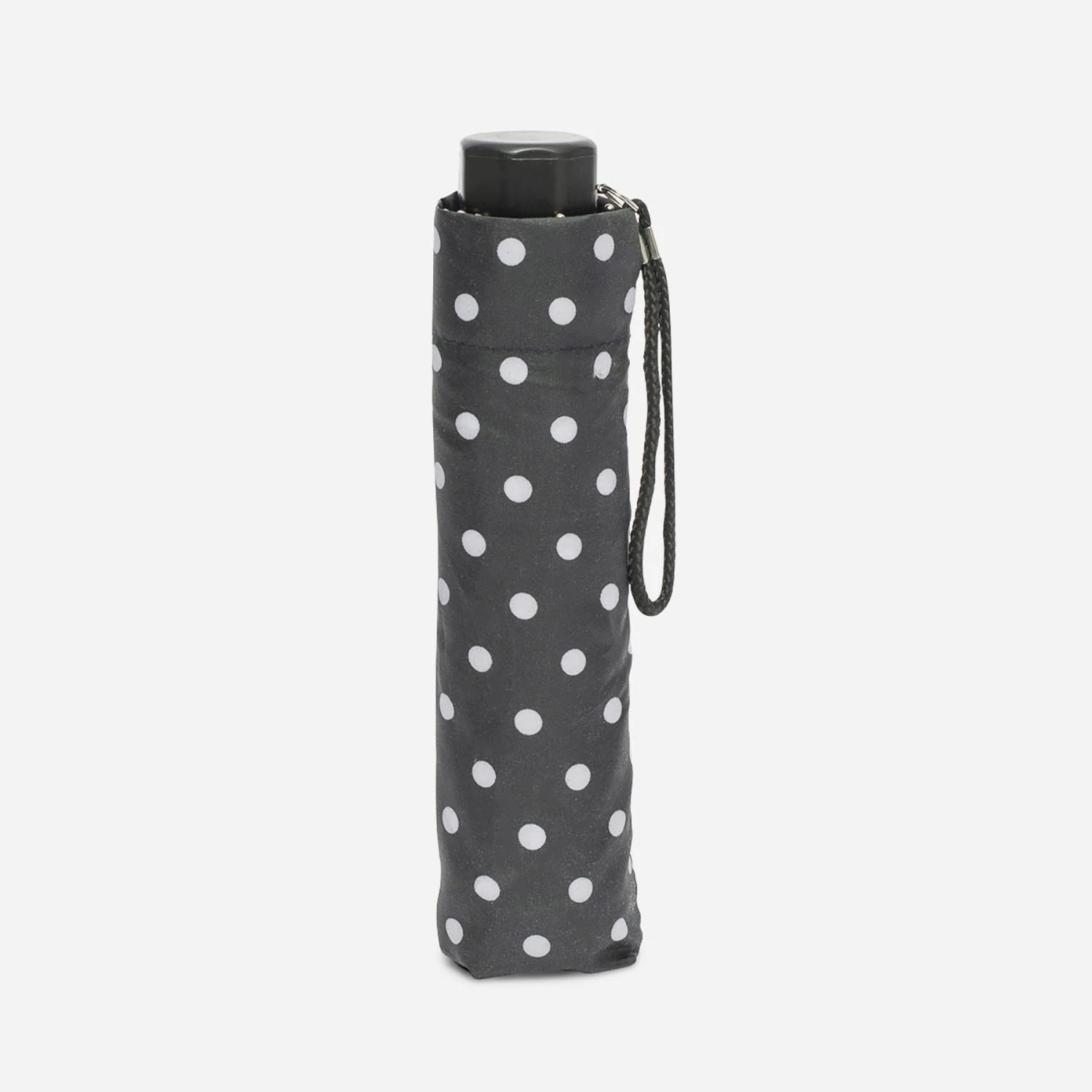 Pour arpenter les rues sans craindre les averses, optez pour ce parapluie noir. Son petit format ultra pratique se glisse dans le sac à main, et son imprimé pois vous assure un petit air rétro au quotidien.