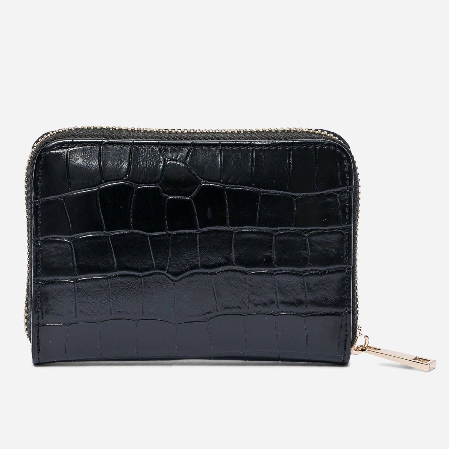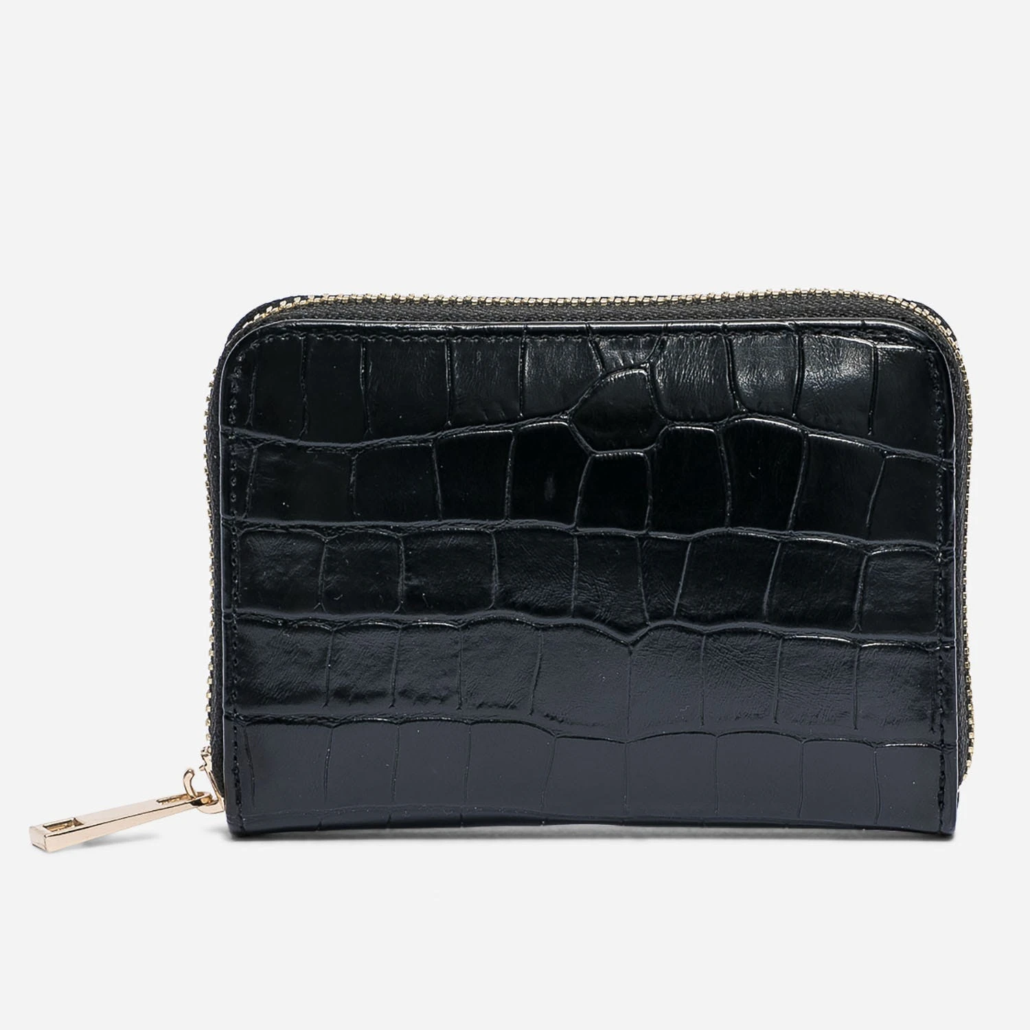 Sortir son porte-monnaie sans le cacher, c’est la promesse de cet accessoire pour femme. En matière synthétique noir, il est finalisé par un embossage effet croco très élégant. A l’intérieur, 1 poche zippée pour la monnaie et 6 fentes pour accueillir les cartes.