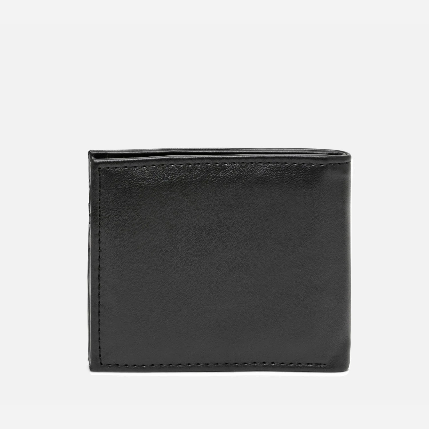 Monnaie, billets et cartes : tout pour accueillir vos papiers, de façon optimisée, dans ce portefeuille en matière synthétique noire. Un modèle sobre et intemporel, à offrir ou se faire offrir.