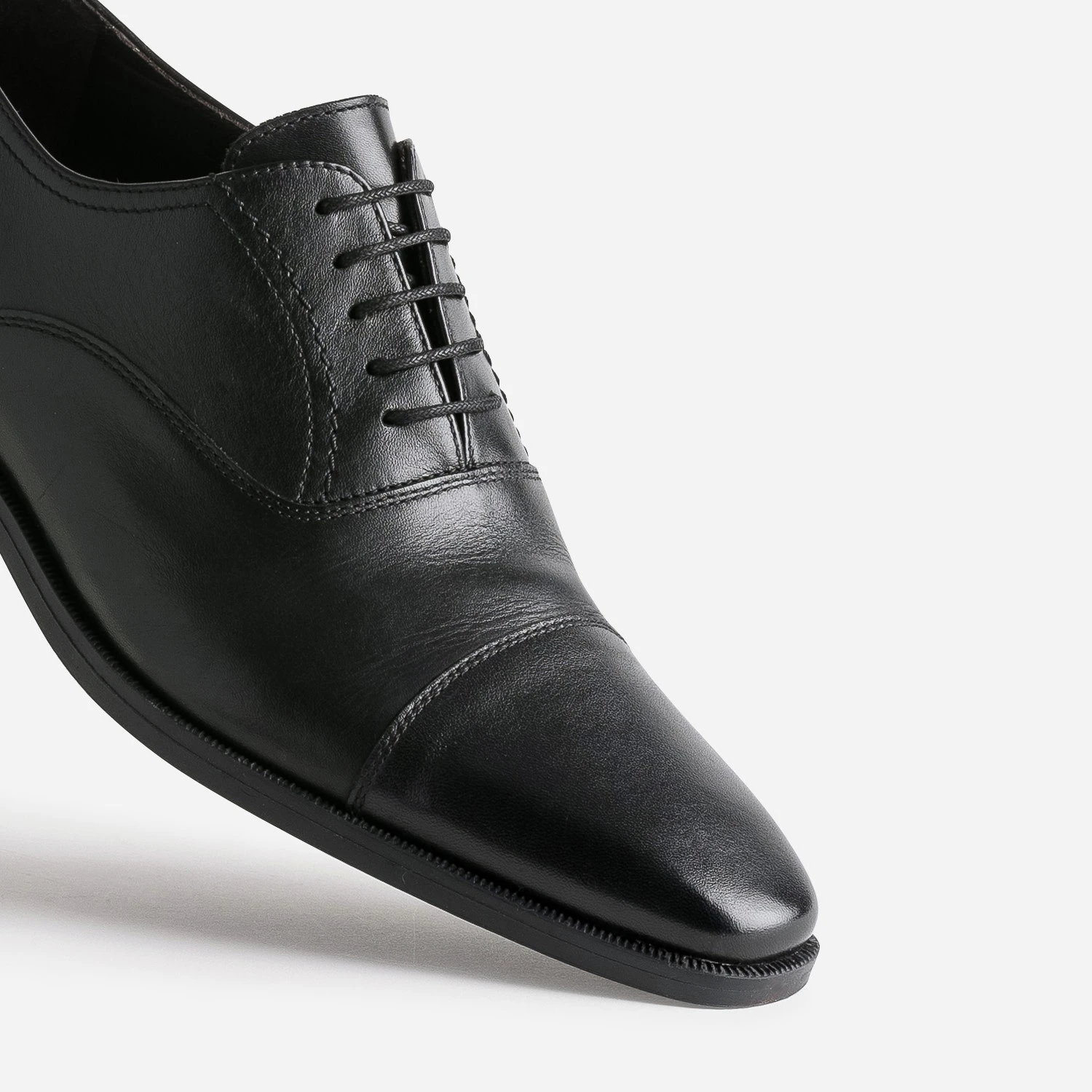 Le Richelieu n’a pas son pareil pour finaliser une tenue masculine, avec élégance. En cuir noir, il se démarque par un bout carré sur une forme plutôt allongée, un bout Molière, cette découpe placée sur le dessus du pied, et des lacets cirés marron. Un modèle formel, à privilégier avec un costume noir.