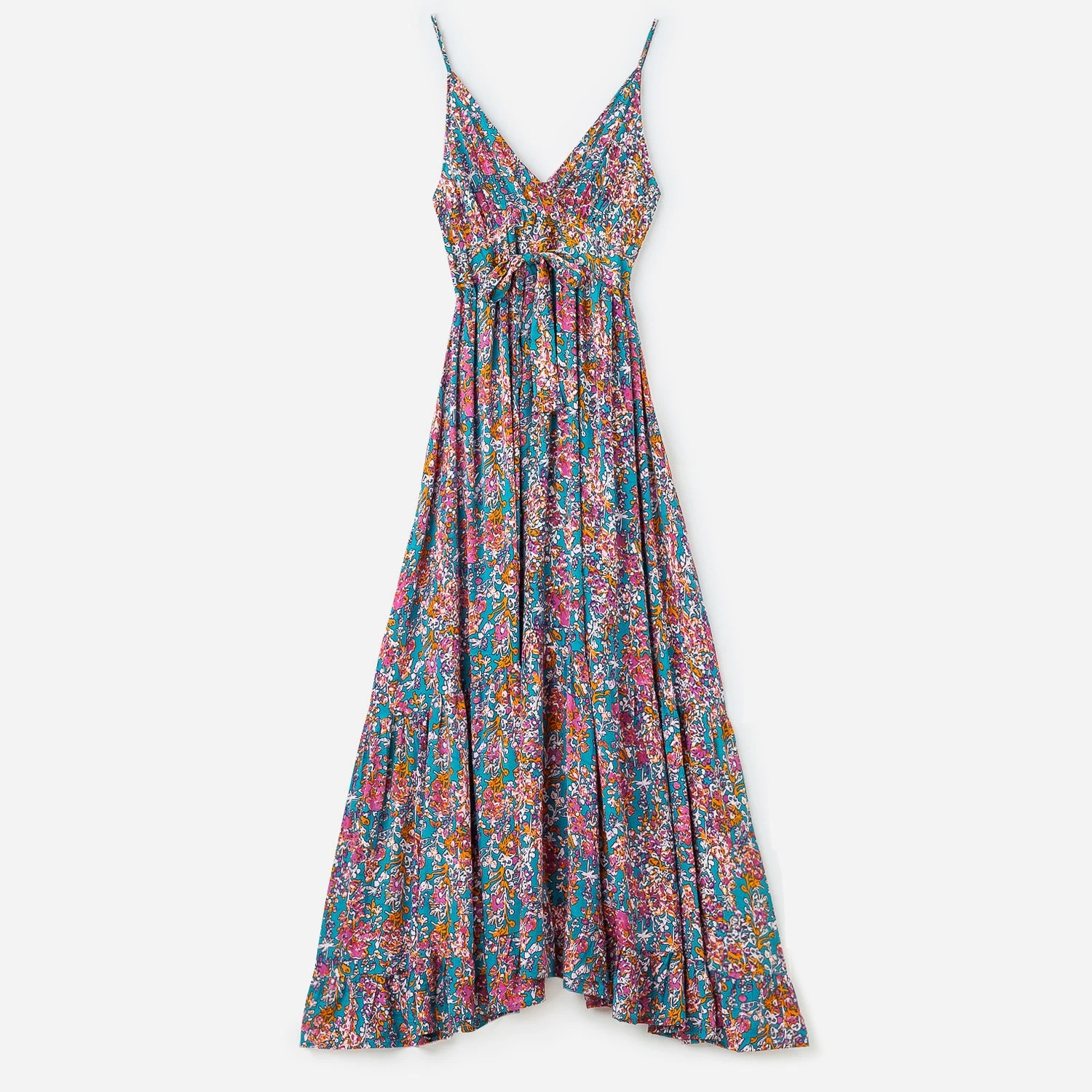 Très longue, très fluide, très fleurie, c’est LA robe incontournable de l’été. Craquez pour son décolleté et ses fines bretelles, pour ses liens à nouer, pour marquer la taille. Misez sur des sandales à talon colorées ou dorées, à l’occasion d’une cérémonie.