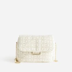 En déco comme en mode, le macramé est toujours à la pointe des tendances. Coloris écru, il recouvre ce sac à main femme, doublé ton sur ton et légèrement matelassé. Il se ferme par aimant et se porte sur l’épaule ou croisé. Un modèle qui s’approprie la tendance bohème, idéal avec une robe longue et des espadrilles compensées.