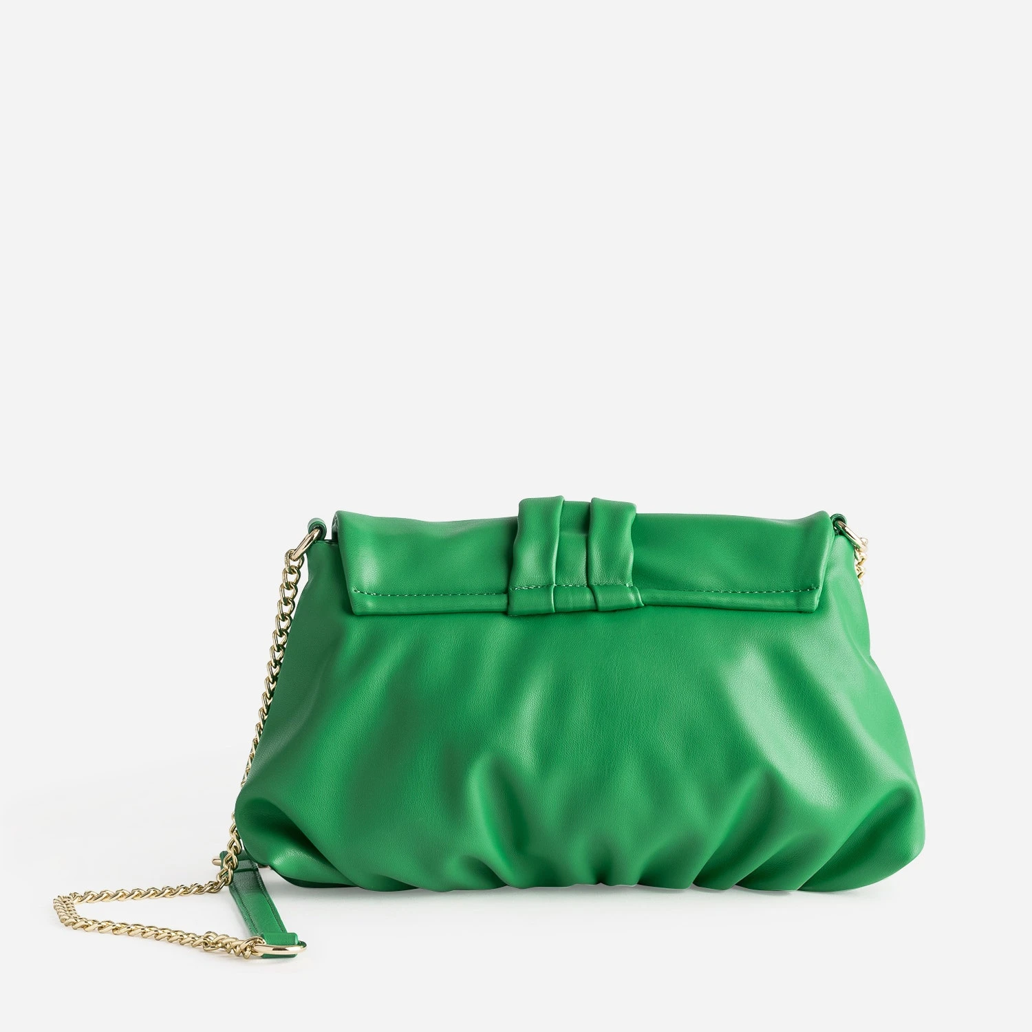 Ce sac à main pour femme défend l’idée d’une mode, comme un jeu, où les règles et les codes sont sans cesse redistribués. Il séduit d’abord par son coloris vert soutenu, très tendance. Il séduit ensuite par sa matière synthétique, incroyablement souple. Il séduit enfin par son format moyen, à porter sur l’épaule ou croisé, grâce à la bandoulière bi matière. Le rabat est, lui, décoré d’une patte avec anneau fantaisie en résine ton sur ton qui lui confère un esprit Couture. Un accessoire facile à associer, avec du beige par exemple, à décaler avec du rose fuchsia ou du lilas.
