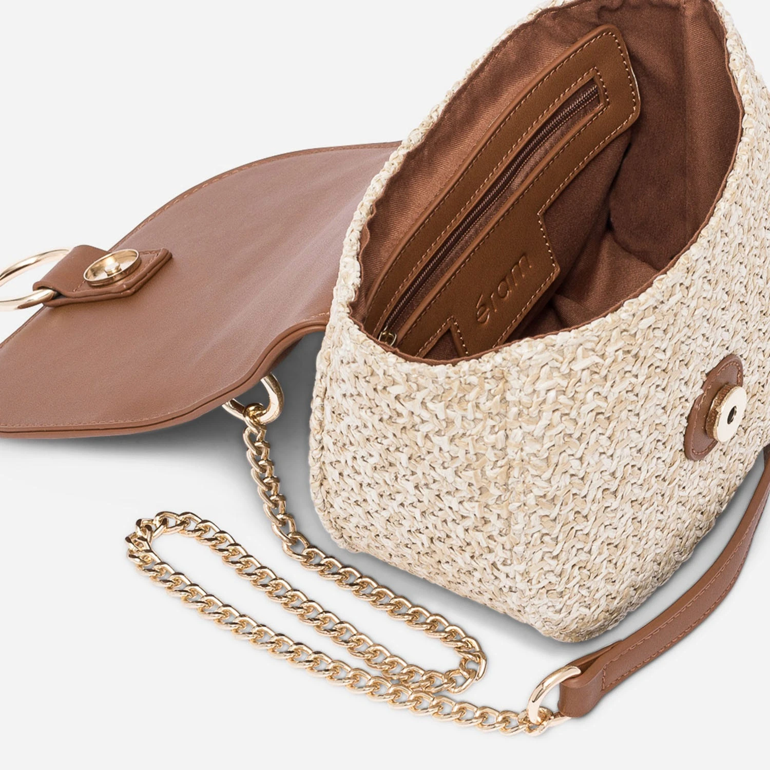 Sac Bandoulière Camel Et Beige Tressé