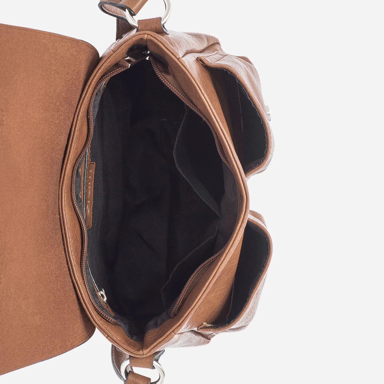 Coup de cœur immédiat pour ce sac bandoulière. Format idéal, couleur élégante, matière facile d’entretien, il a tout pour plaire. Il multiplie aussi les poches internes et externes pour accueillir toutes vos affaires. Un modèle couleur cognac, à assortir avec tous vos looks de la saison.