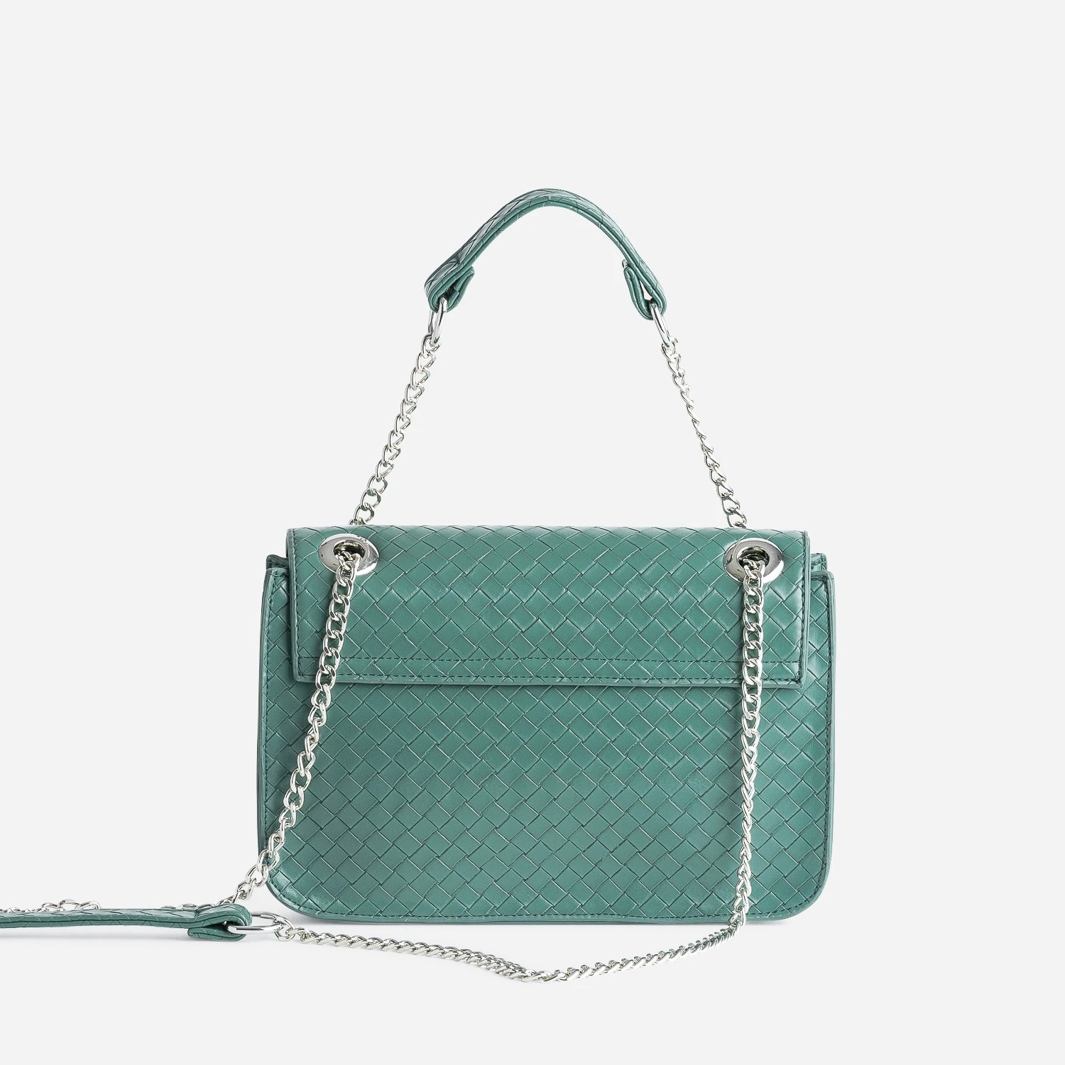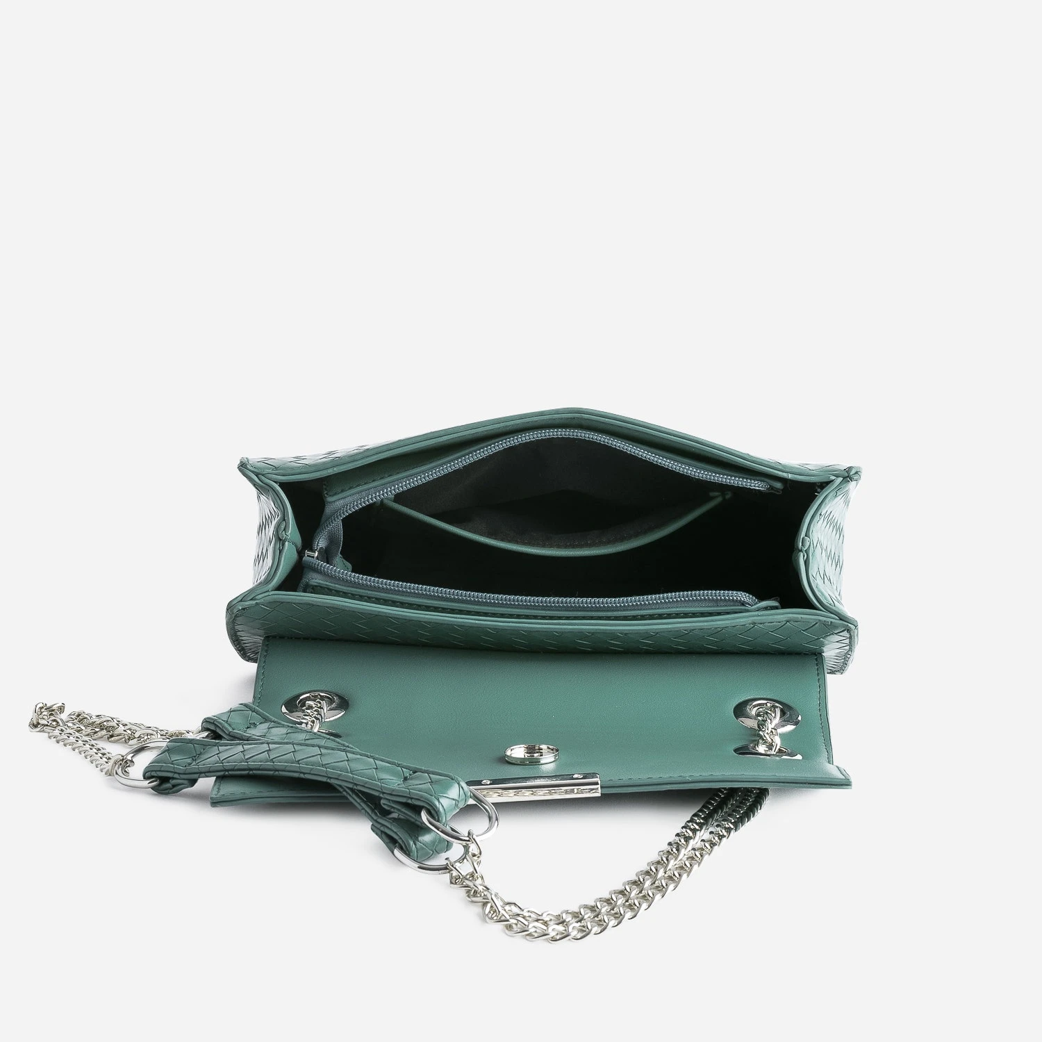 L’émeraude n’est pas que le nom d’une pierre précieuse. C’est aussi une couleur phare de la gamme des verts, revenue à la pointe des tendances depuis quelques saisons. Elle sublime la matière synthétique rigide de ce sac à main, modernisé par un effet tressage réussi. Il se porte, court ou long, sur l’épaule ou croisé, grâce à la bandoulière associée à un système de coulisse judicieux. Jouez-le, en camaïeux, avec un look vert anis, vert d’eau ou kaki, plutôt audacieux.