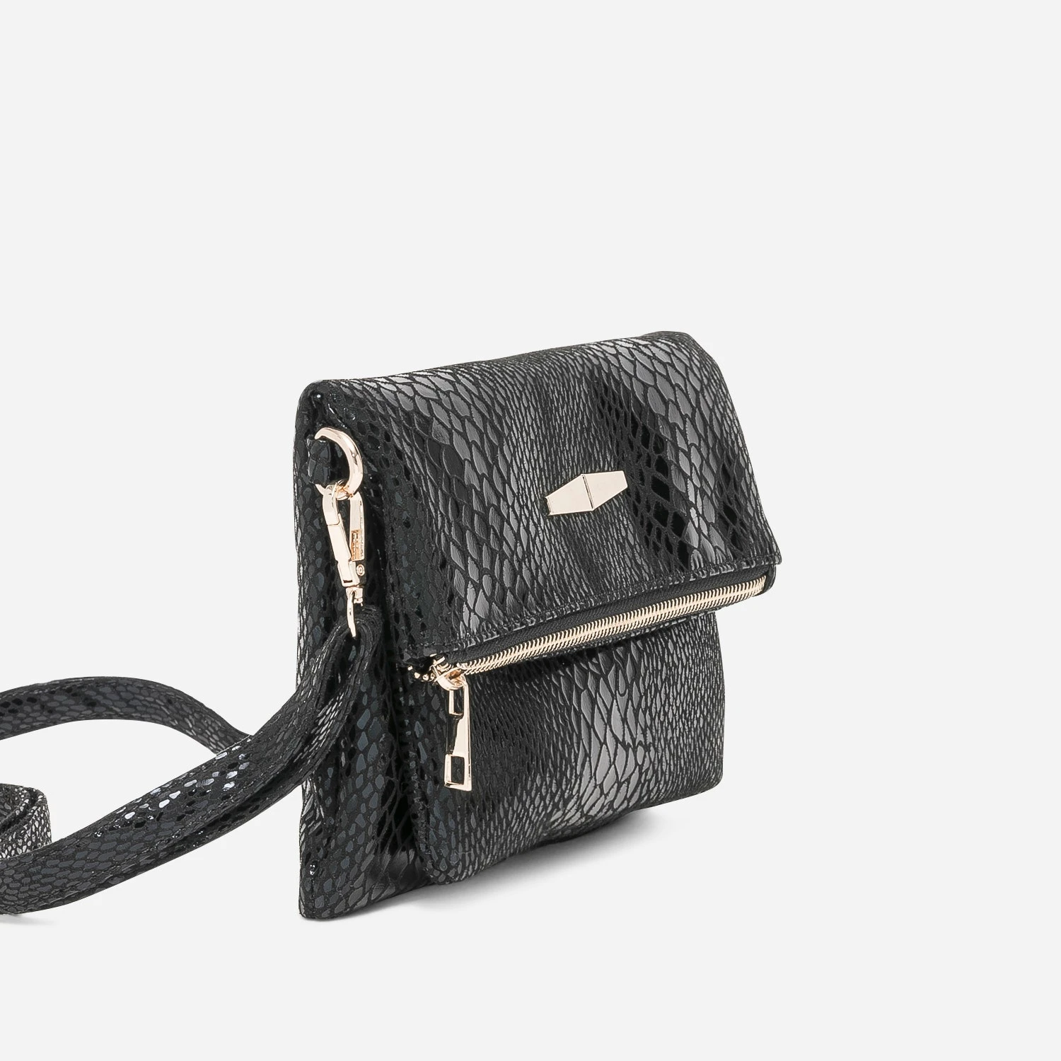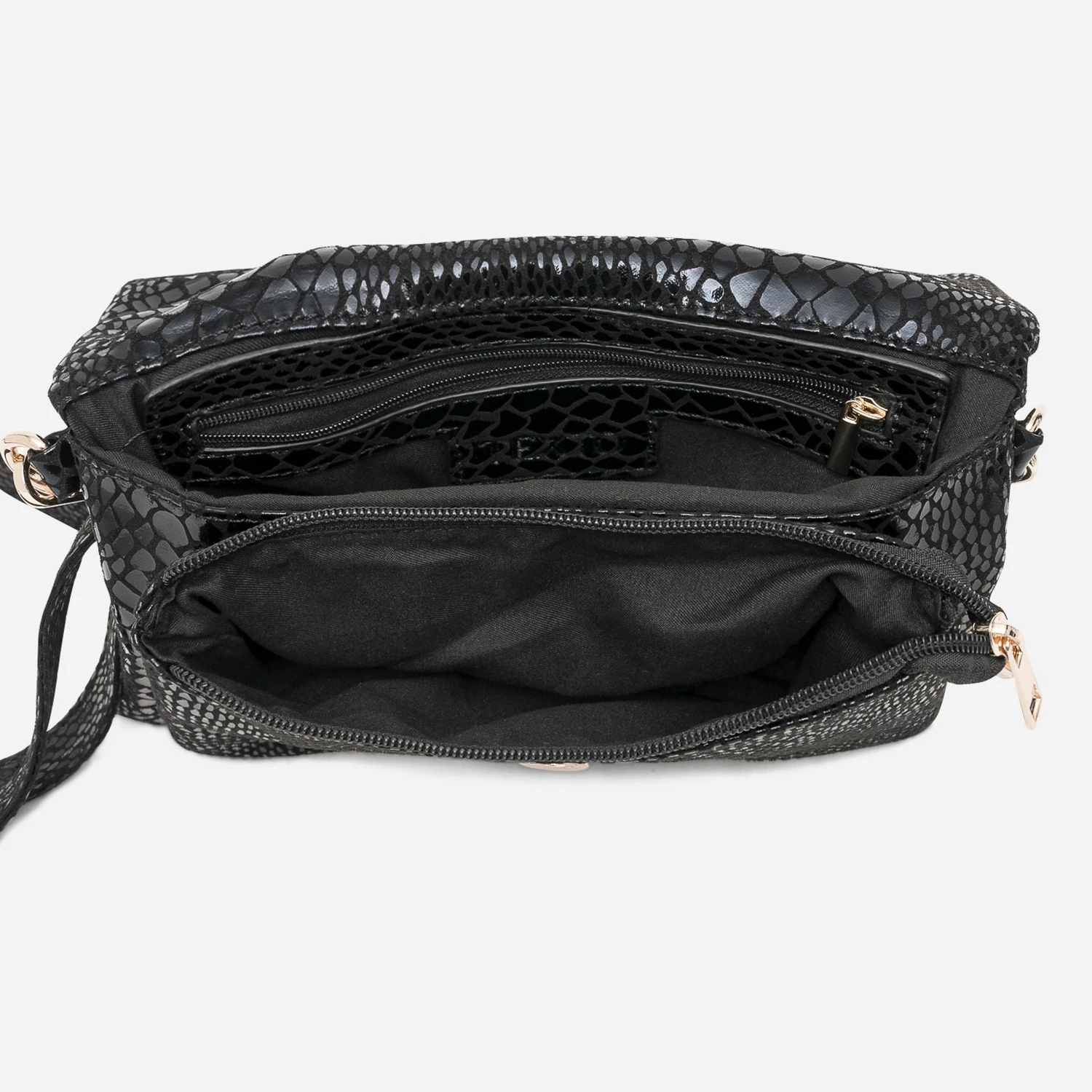 Sac Bandoulière TEXTO Noir Effet Python Verni