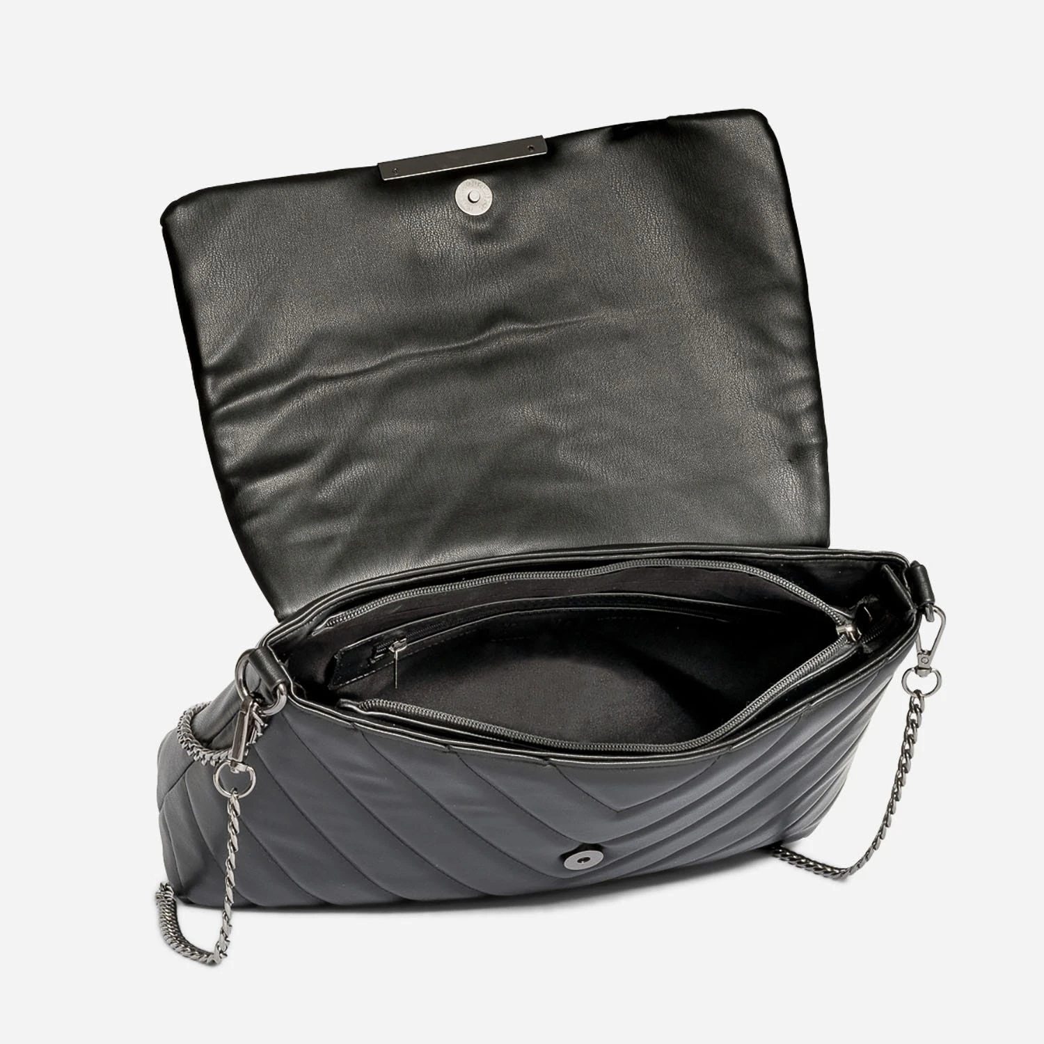 Fermeture par aimant et zip. 1 compartiment avec 3 poches internes dont 1 zippée. 2 bandoulières non réglables, dont 1 amovible.