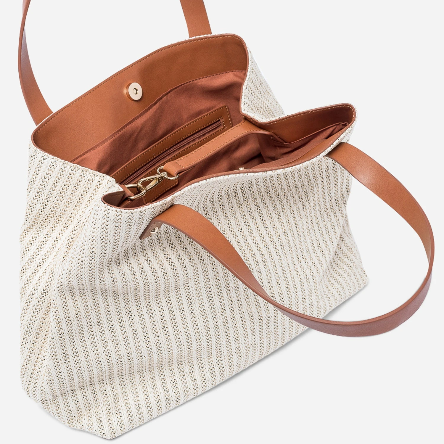 Fermeture par aimant. 1 compartiment avec 3 poches internes dont 1 zippée.