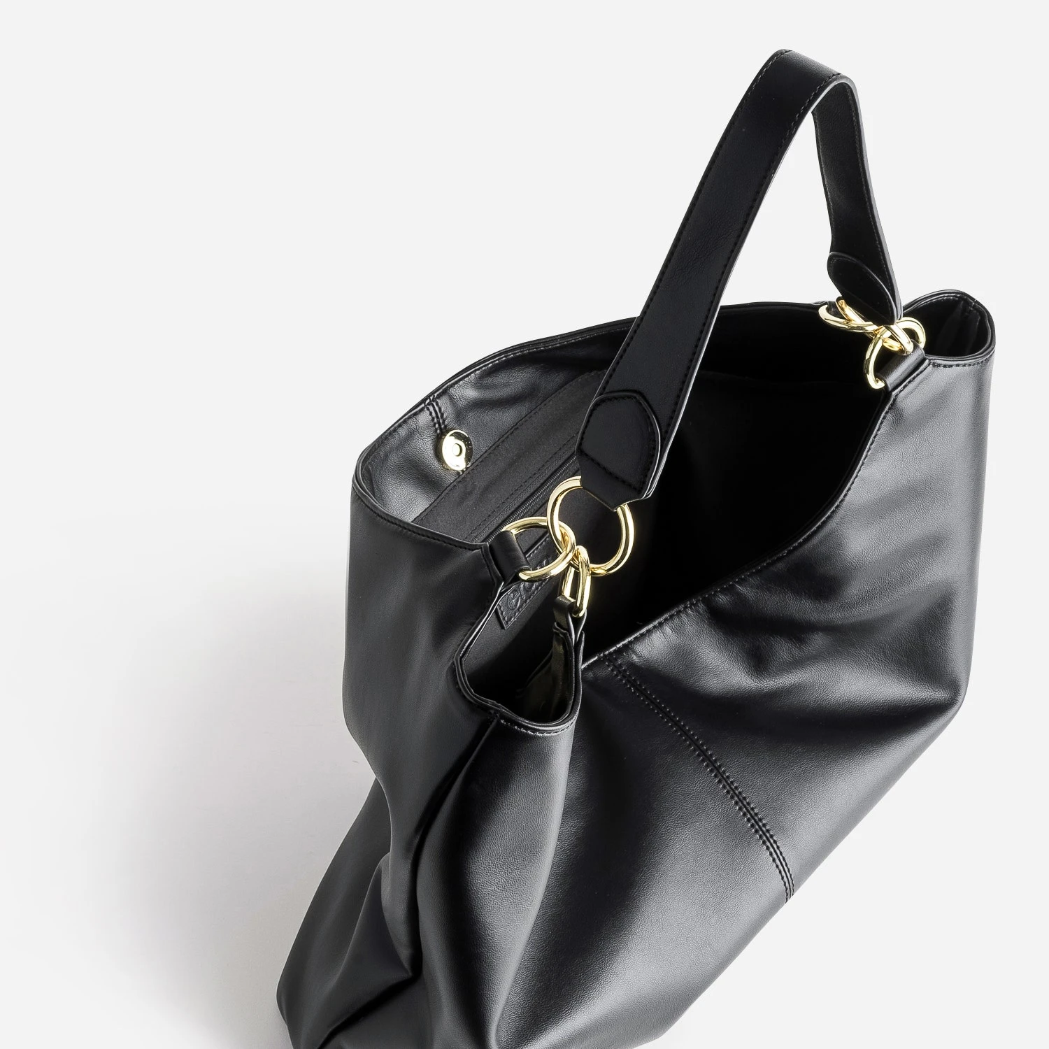 Jamais assez grand ? Essayez ce sac cabas maxi format. Son compartiment intérieur présente 3 poches, dont 1 zippée, pour accueillir vos effets personnels, au quotidien. Ses atouts ? Une large anse, pour un maintien parfait sur l’épaule, et un coloris noir, sobre et intemporel. A privilégier avec des tons neutres.