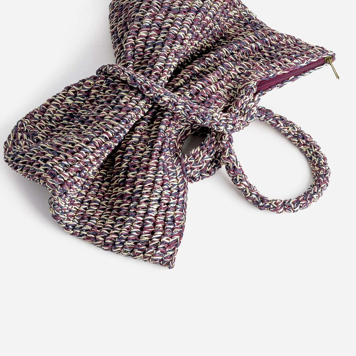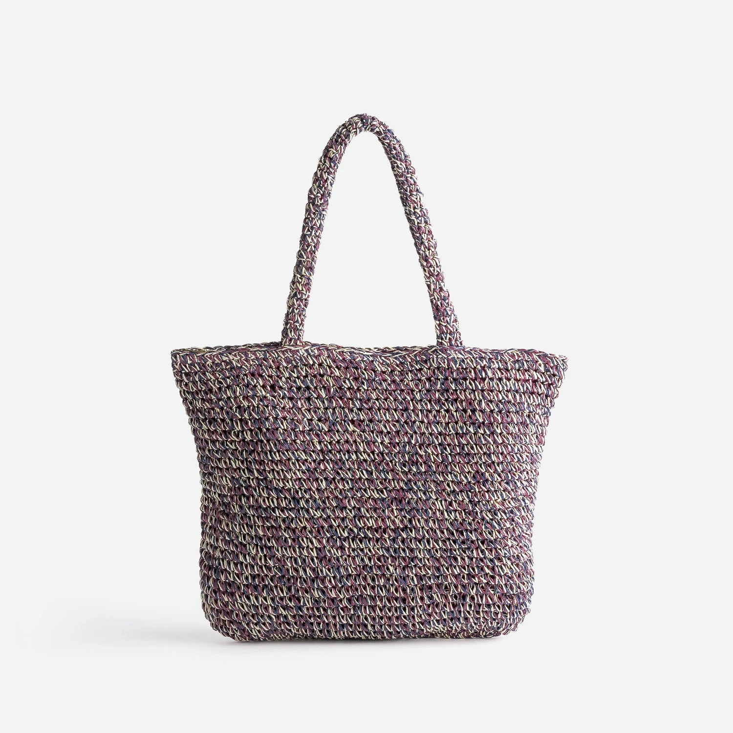 On connait par cœur le trio bleu, blanc, rouge. Découvrez le trio marine, écru, prune, plus mode. Il investit le sac de l’été, dans une version cabas, en papier tressé et doublé.