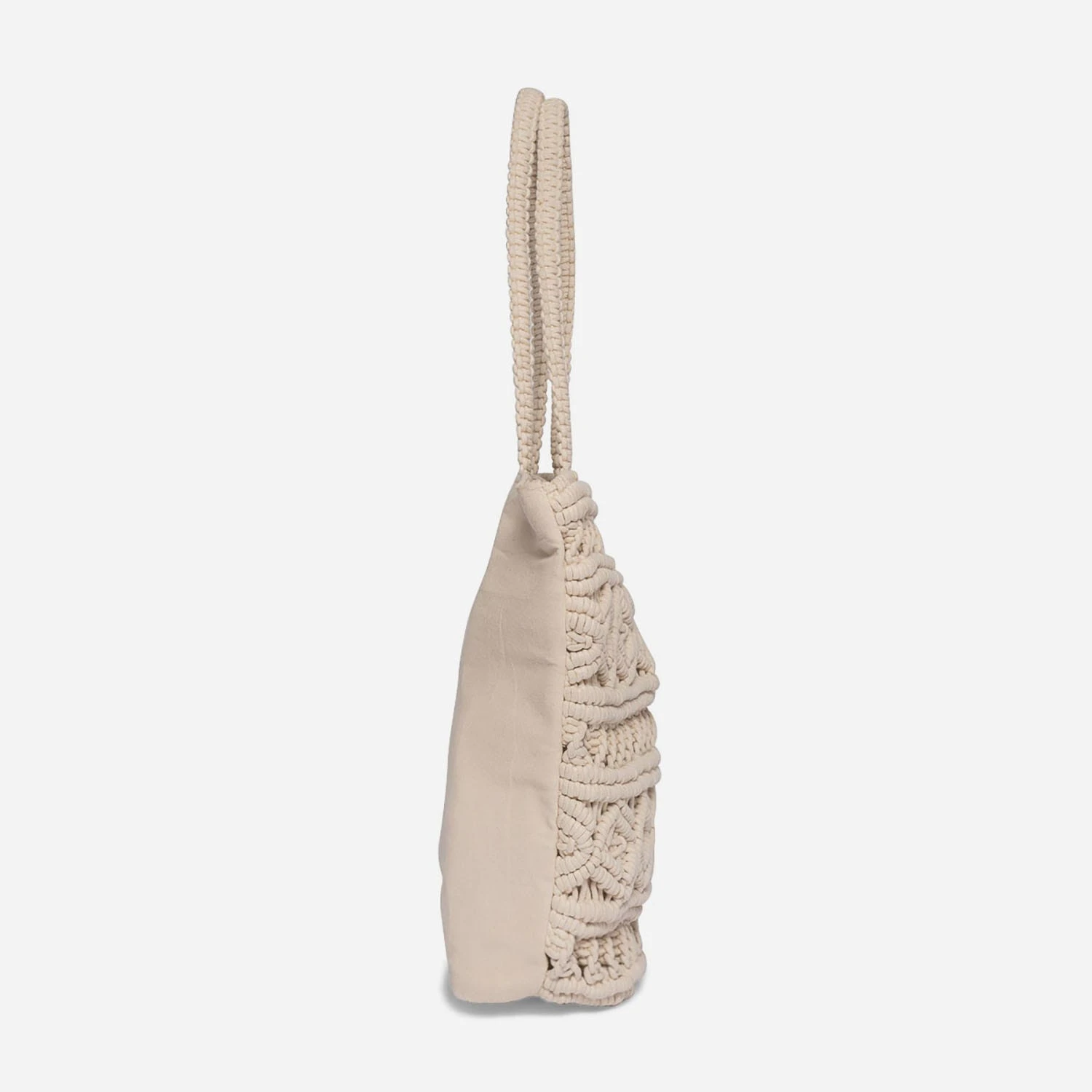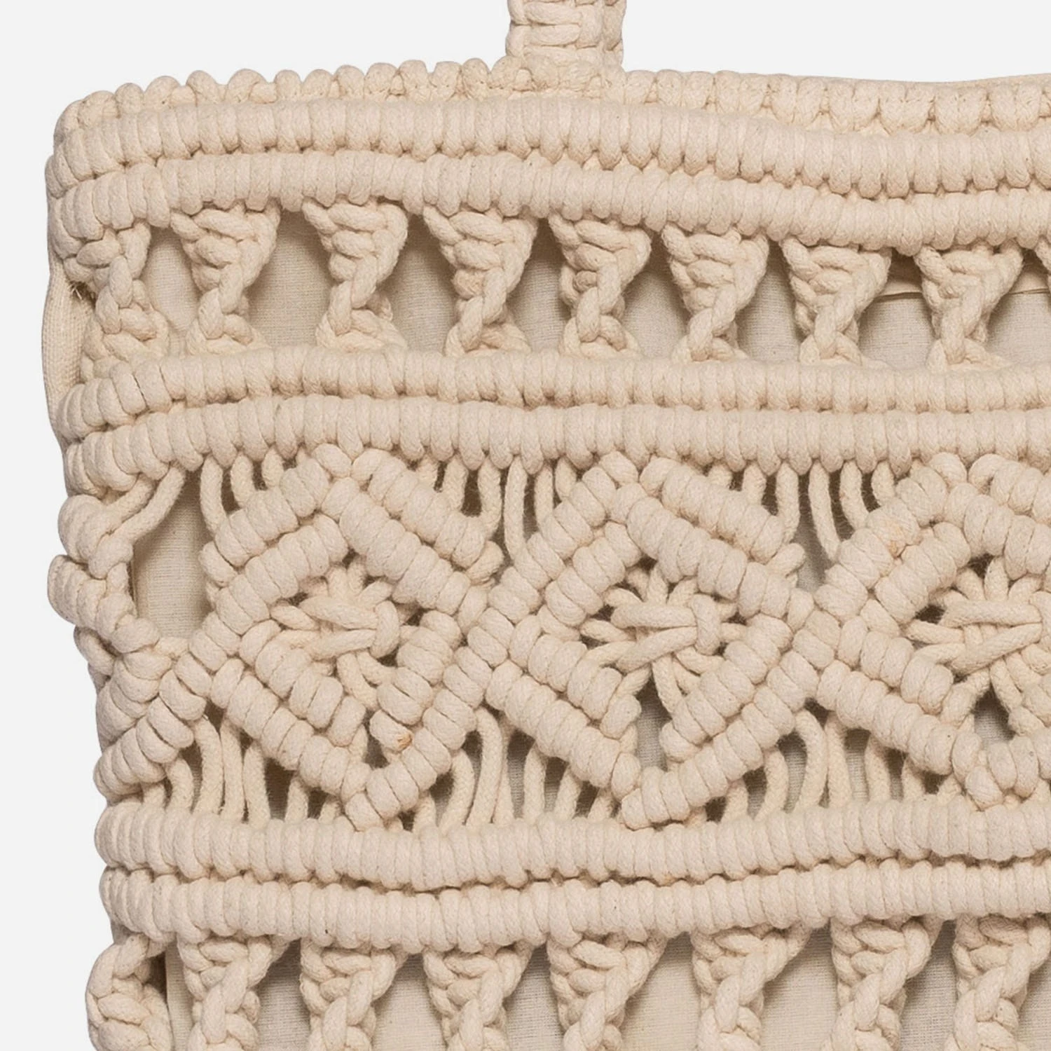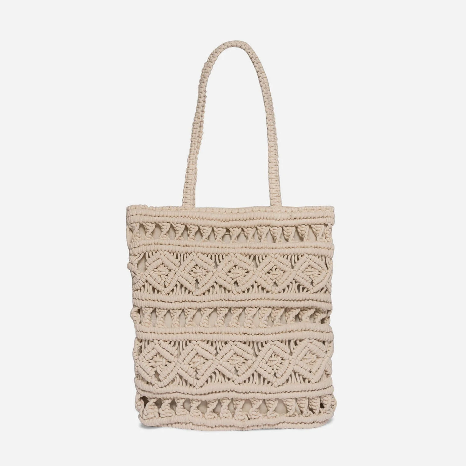 L’esprit bohème n’en finit pas de nous séduire. Après les spartiates, le sac en macramé. Choisissez-le dans un format totebag, très fonctionnel au quotidien. En textile beige, il passe partout, le jour comme le soir, avec une robe longue et des bijoux en bois.