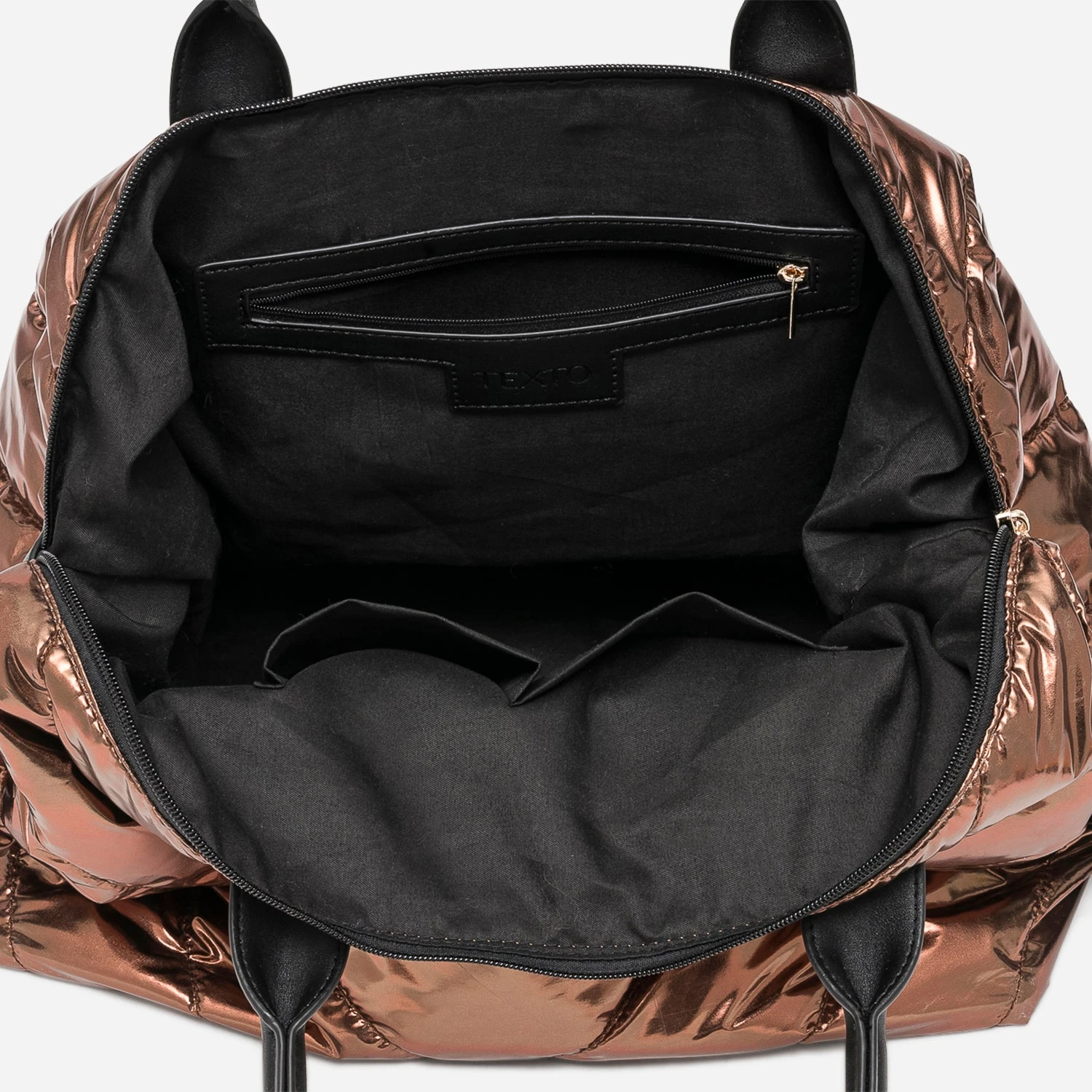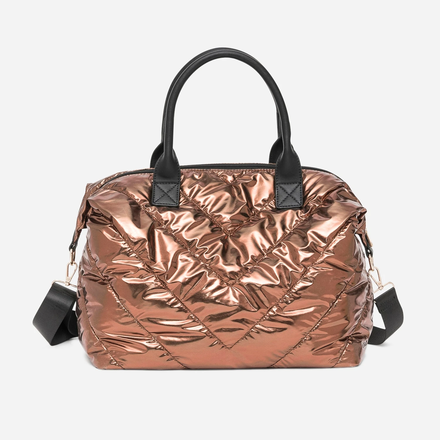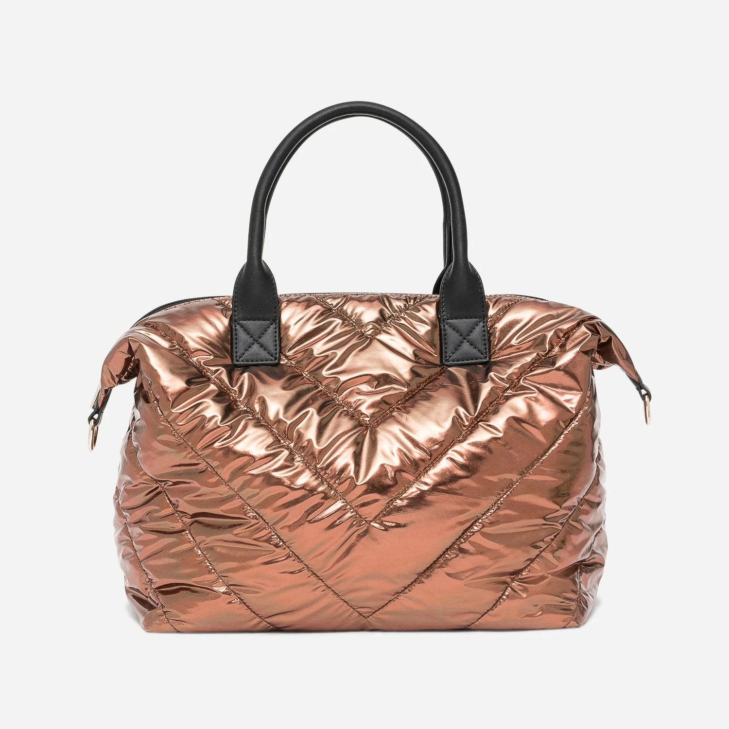 Pour se motiver pour aller au sport ou pour bousculer un look trop sobre, qu’importe la raison. Vous avez besoin d’un nouveau sac et on vous croit ! Grand format, nylon bronze métallisé et matelassé, il se porte à la main, sur l’épaule ou croisé, pour vous accompagner partout où vous devez aller.