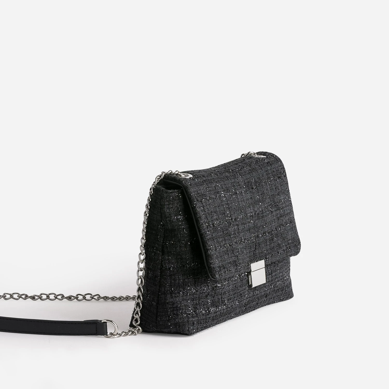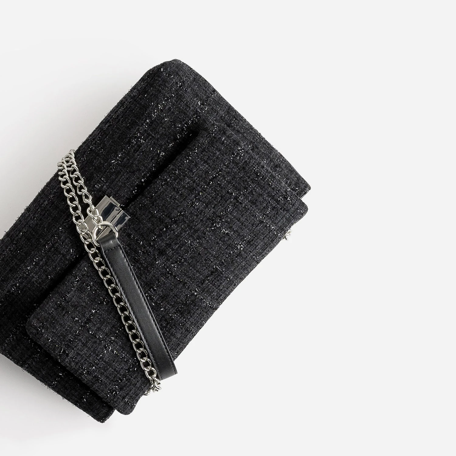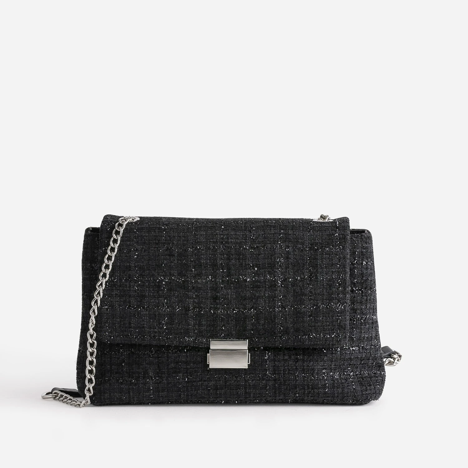 Sac TEXTO Noir Textile Façon Tweed Pailleté