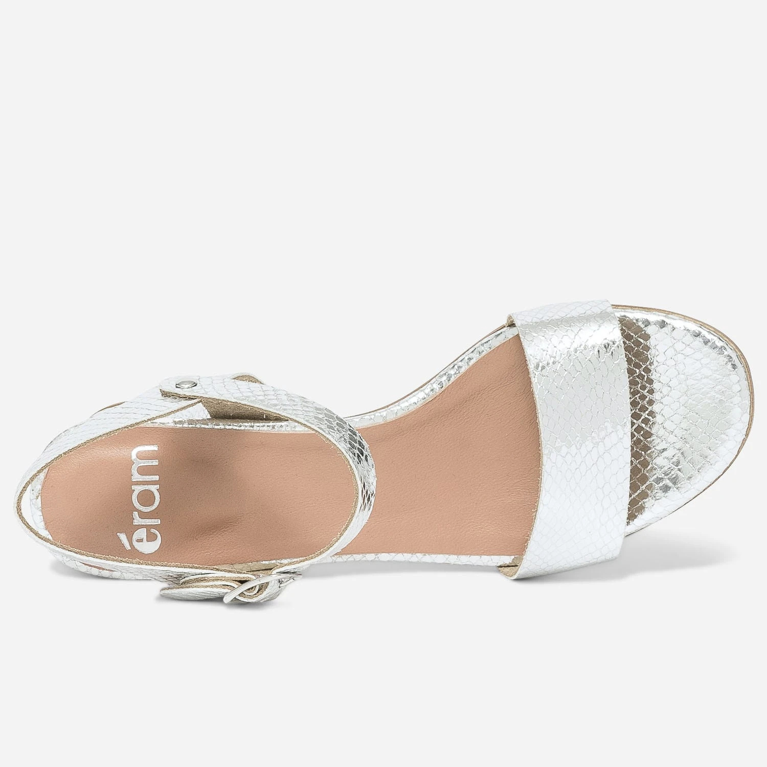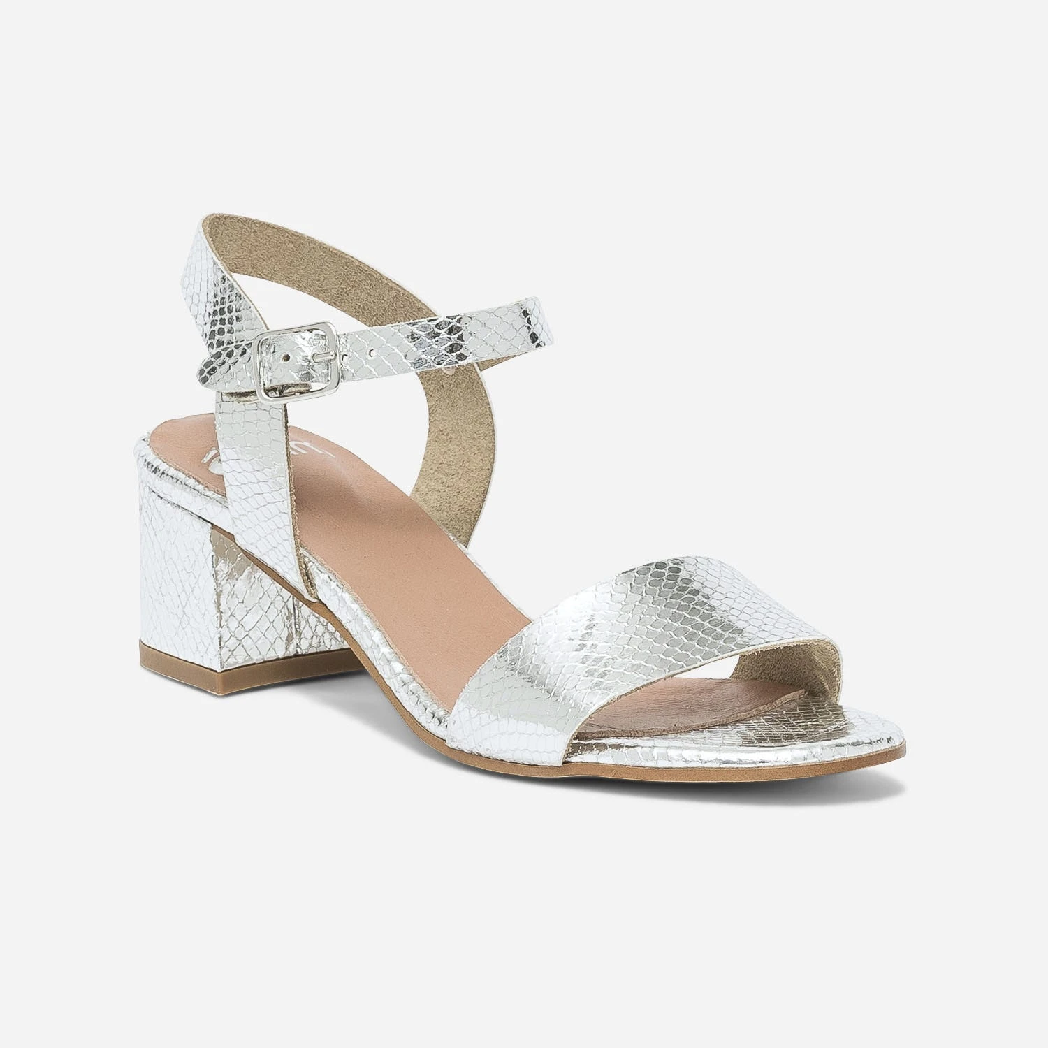 N’attendez pas pour faire briller vos journées ! Cette sandale en cuir joue l’audacieux coloris argent métallisé, associé à un effet python, jusqu’au talon. Non doublée, elle présente une première moussée bi matière. Un modèle idéal pour toutes les cérémonies, que vous soyez la reine du jour ou une invitée.