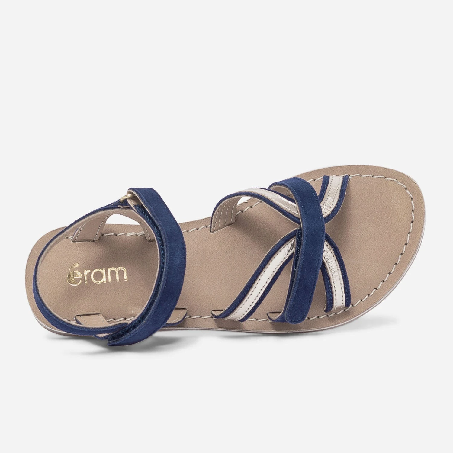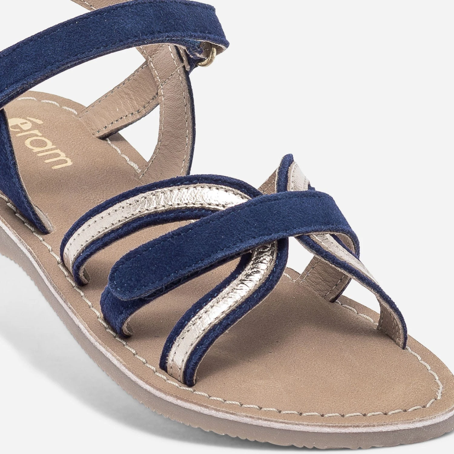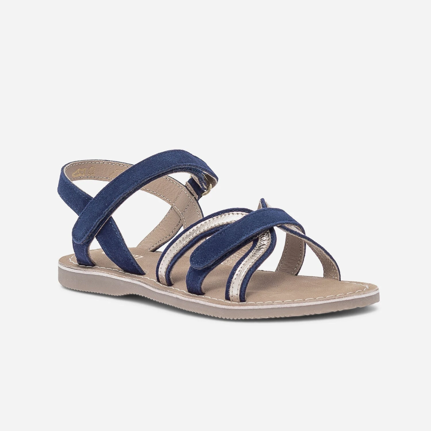 Bleu marine et or, c’est le duo parfait ! Cette sandale en cuir velours est pensée pour matcher avec tout. Ses atouts ? Des fermetures par scratchs qui permettent d’ajuster le maintien du pied, à l’avant et autour de la cheville. Une robe bleue, un tee-shirt blanc et un short en jean, le modèle s’adapte en toutes circonstances.