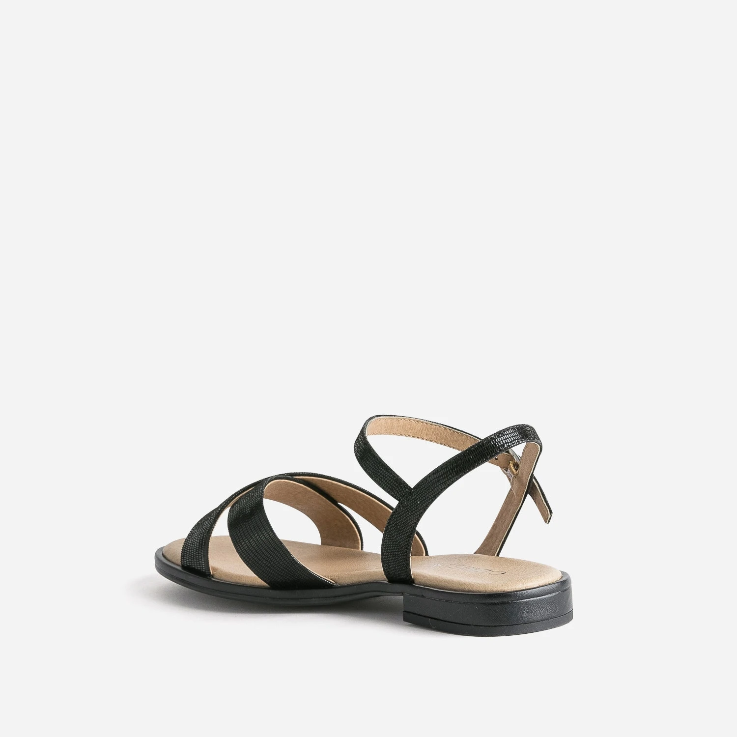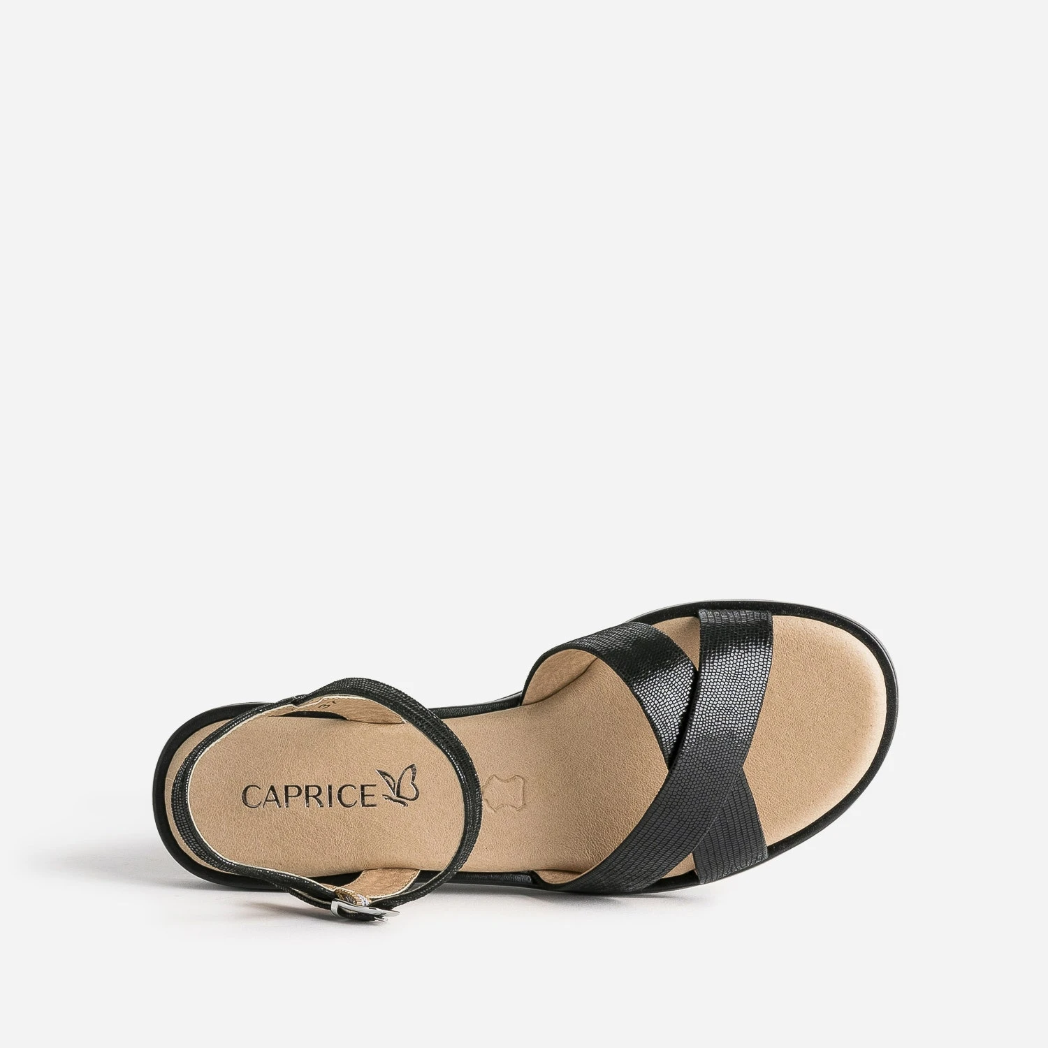Spécialiste du bien-être, la marque CAPRICE propose des chaussures au confort incomparable. A l’heure où les beaux jours et la chaleur reviennent, faites l’expérience d’une sandale qui sublime et soulage le pied. Une fine bride autour de la cheville, deux larges brides croisées au-dessus du pied, elle présente une doublure cuir et une première moussée. Un modèle décliné en coloris noir avec effet python verni, qui s’adapte facilement à vos tenues quotidiennes.
