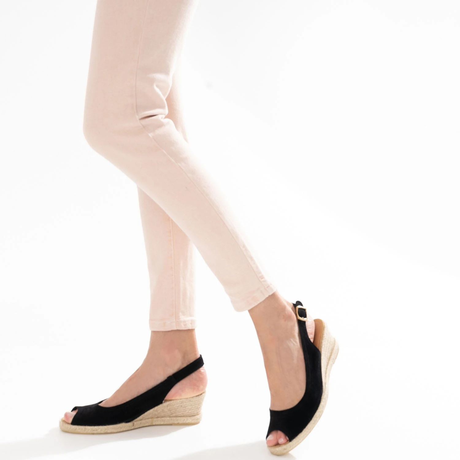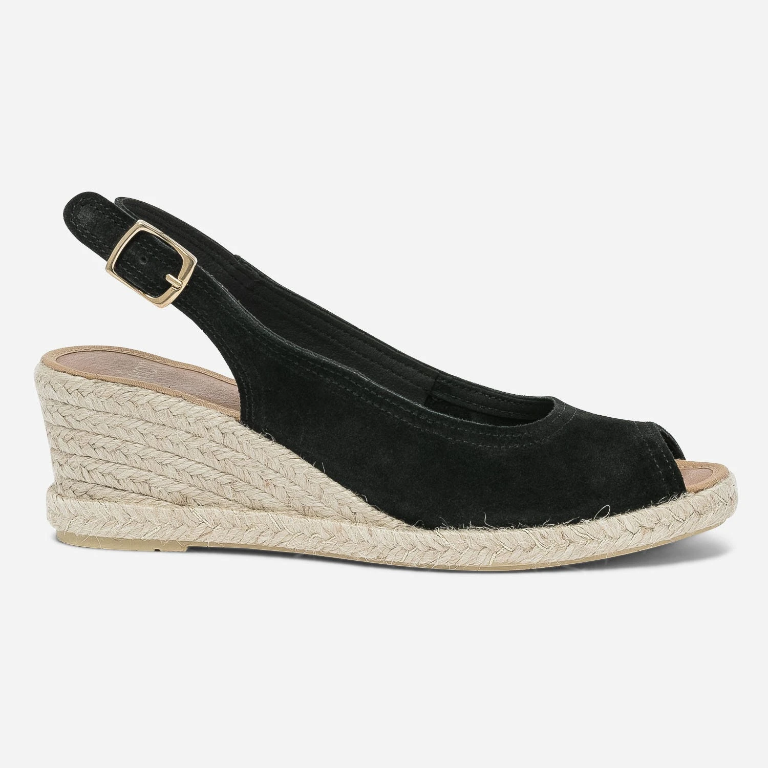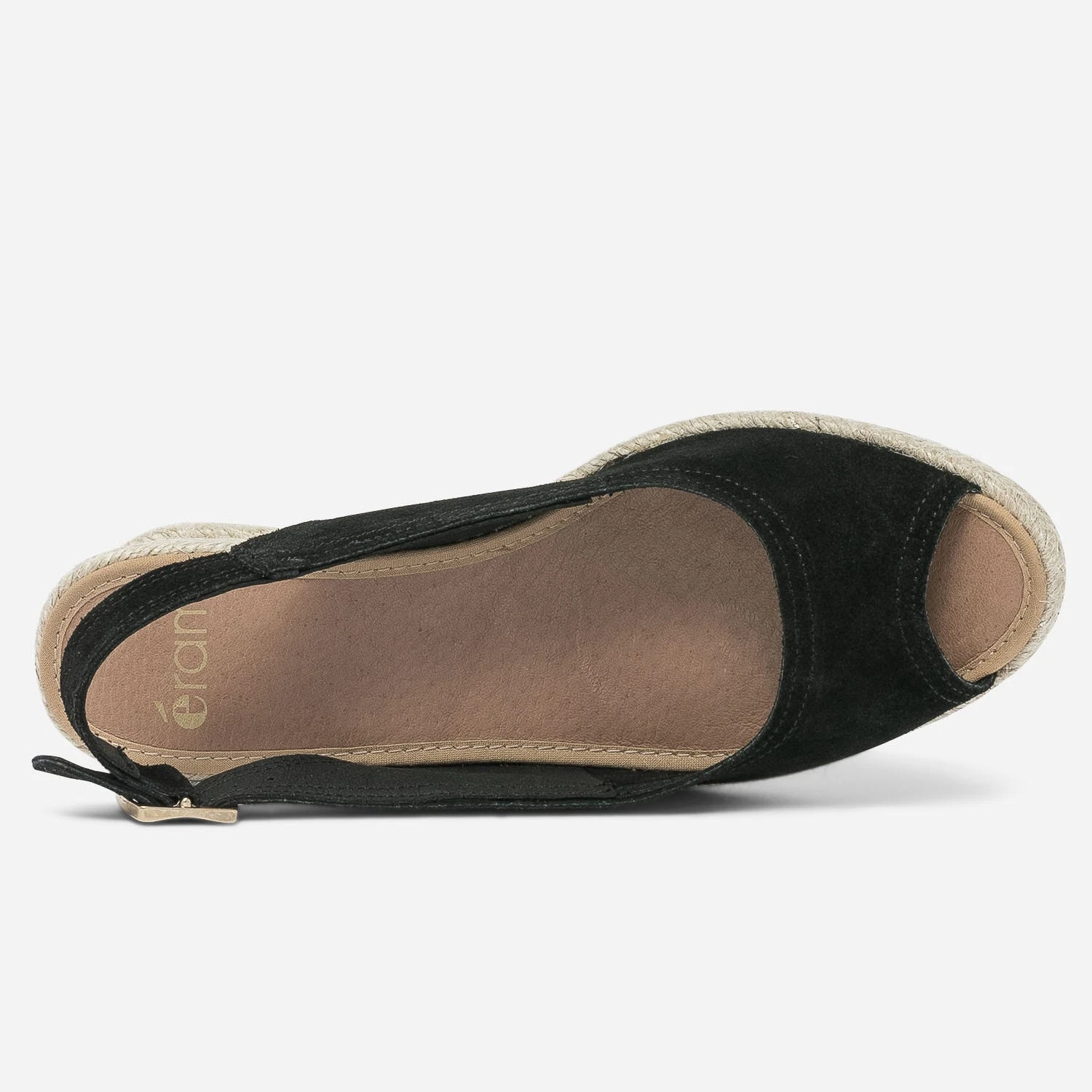 Sandale Compensée Noire En Cuir Velours