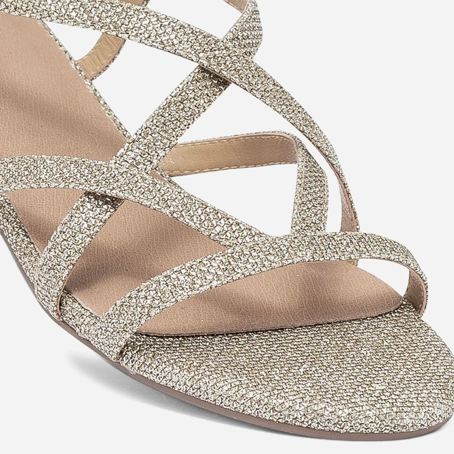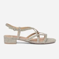 De la pointe jusqu’au talon, cette sandale mise tout sur la finesse et le chic. En matière synthétique, elle s’offre un coloris or avec effet pailleté du plus bel effet. Les brides viennent s’entrelacer sur le dessus du pied et le talon de 3 cm permet de marcher toute la journée sans se fatiguer. Un modèle à porter la semaine au bureau, comme en soirée ou en week-end festif.