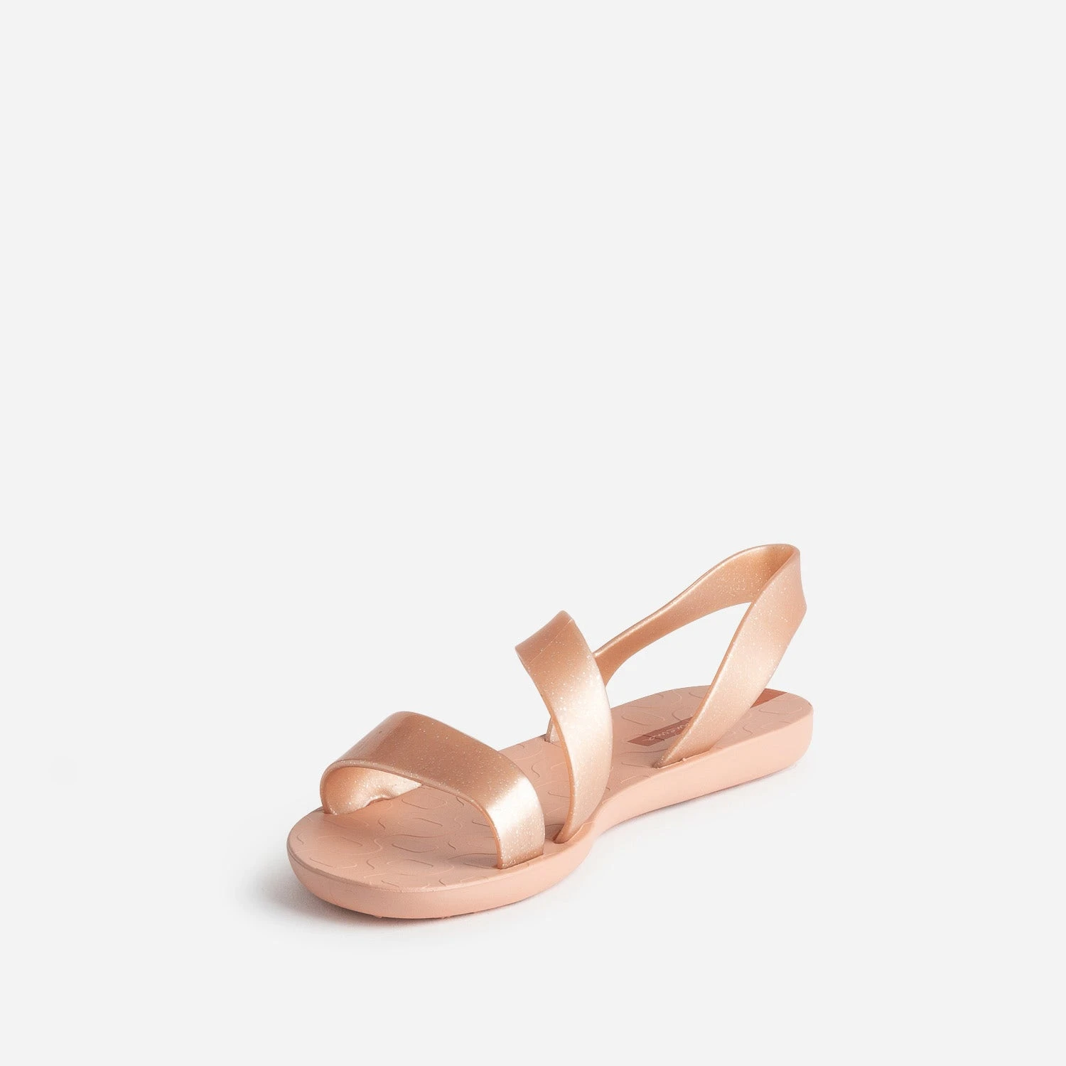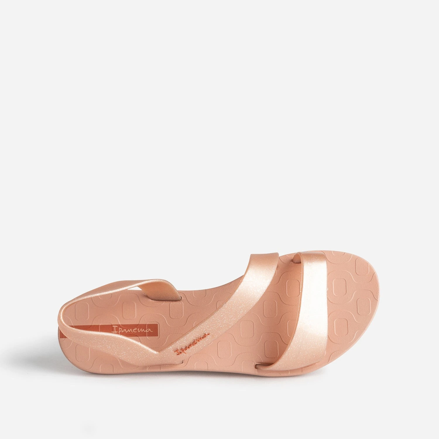 Nouveau coloris rose blush pour cette sandale en caoutchouc. Elle se démarque par des brides larges, avec paillettes intégrées, et un motif graphique sur la semelle, qui fait écho à celui du remblai de la plage d’Ipanema.