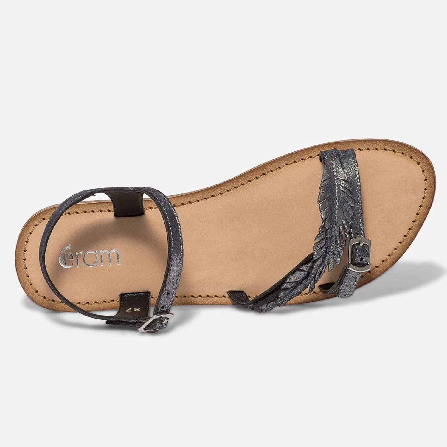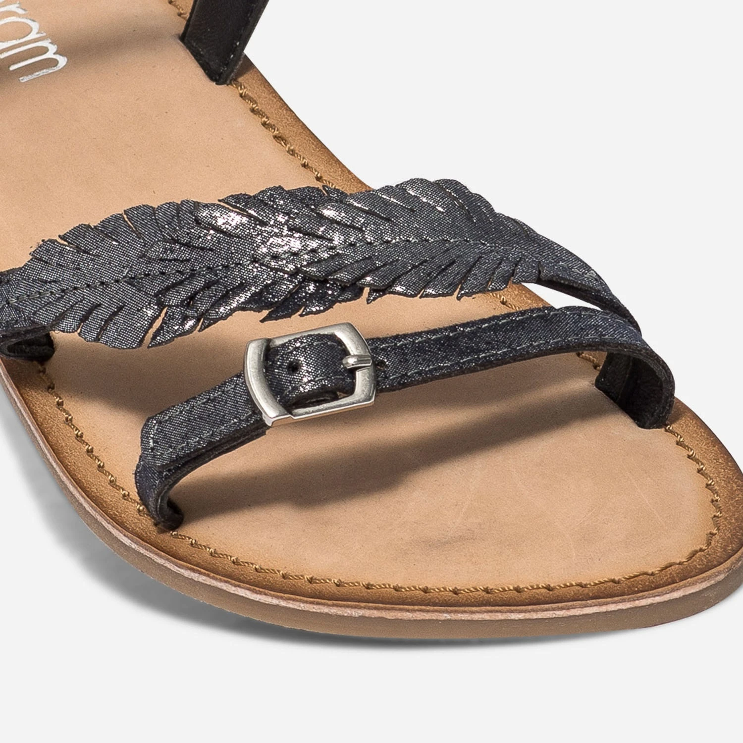 Si votre fille ne jure que par les paillettes, offrez lui cette sandale en cuir de chèvre noir, sublimé par une finition irisée. Le pied est maintenu par trois brides, dont deux fermées par une boucle et l’une fermée par un scratch ; celle-ci est rehaussée d’un long patch en forme de feuilles qui signent un style bohème. Parfaite pour une cérémonie, facile au quotidien, elle s’associe avec toutes les couleurs, les neutres comme les vitaminées ou les pastel.