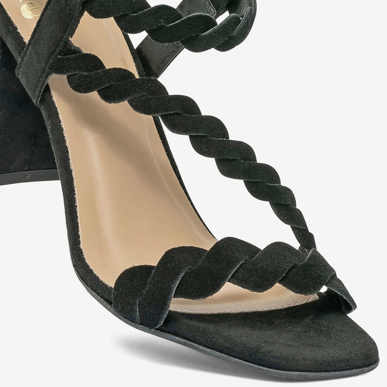 Chic. Elégance. Intemporalité. Modernité. Audace. Finesse. Quel mot choisiriez-vous pour décrire cette sandale femme ? Confectionnée en cuir velours, déclinée en coloris noir, elle se laisse sublimer par des brides façon entrelacs. Le talon recouvert de 8 cm allonge résolument la silhouette. Un modèle à réserver aux jours d’exception, tout au long de la saison.