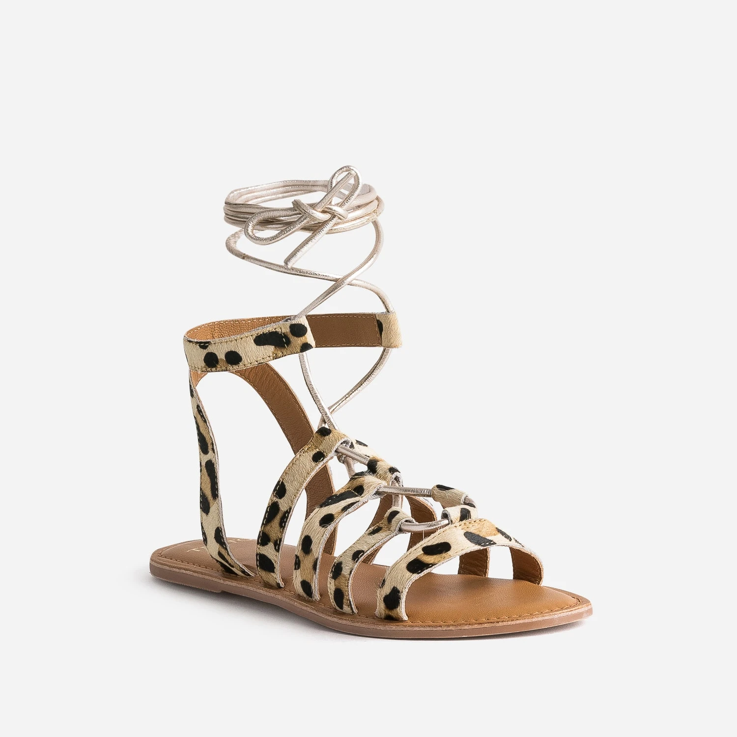 Sandale Plate TEXTO Cuir à Motifs Léopard