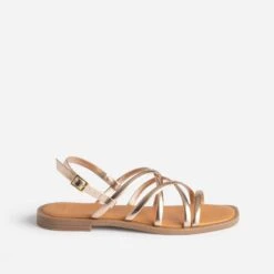 Le meilleur conseil pour apporter du chic à une tenue ? C’est d’oser une touche de brillance bienvenue. Exemple avec cette sandale plate en matière synthétique lisse, déclinée en coloris rose cuivré. Ses brides se croisent, inspirées des spartiates, et le bout carré apporte une belle modernité. Faites l’expérience, avec une robe beige ou un costume rose pastel.