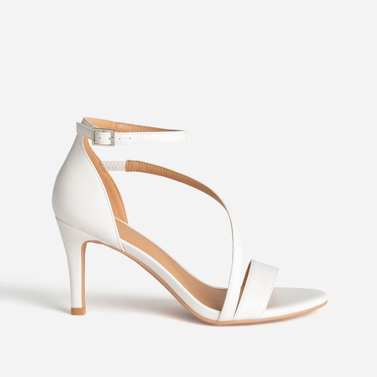 Le premier mot qui vient à l’esprit quand on découvre cette sandale, c’est Wahou ! Une matière synthétique lisse, mise en valeur par un coloris blanc immaculé, un talon fin de 8,5 cm, qui allonge la silhouette, et des fines brides, qui épousent le pied avec délicatesse. Un modèle ultra féminin pensé pour faire le show. A vous robe-fourreau, tailleur inspiration smoking ou combinaison-pantalon rehaussée de dentelle, digne des plus belles cérémonies.