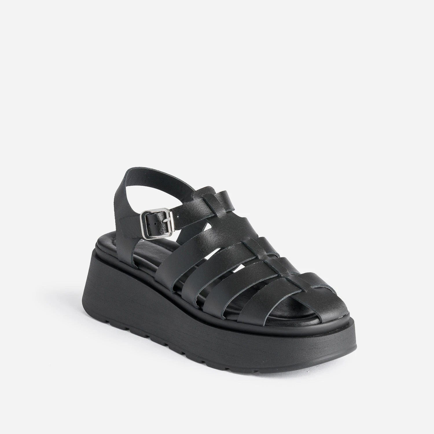 Sandale TEXTO Noire En Cuir Semelle Plateforme