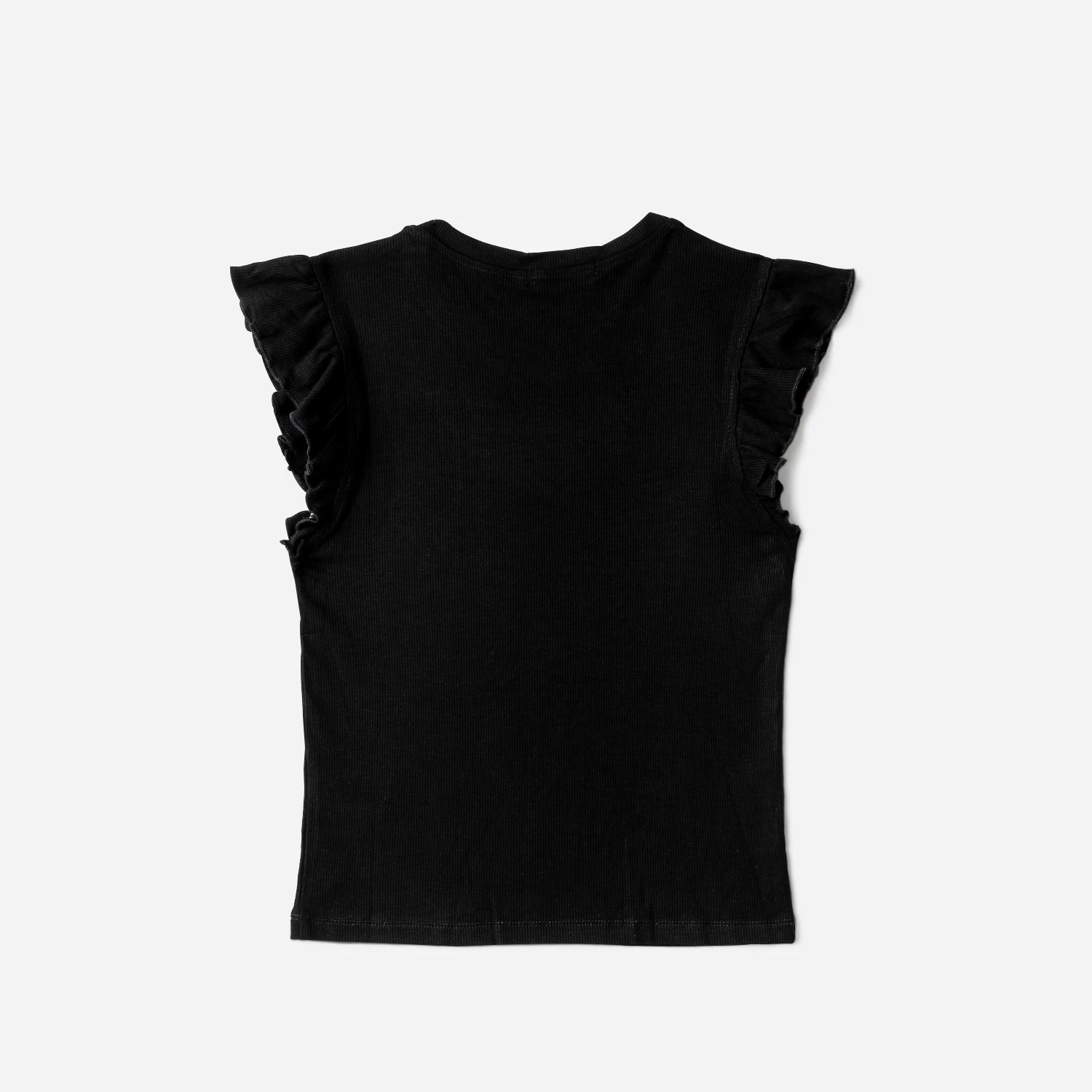 Dans la famille des pièces essentielles du dressing, demandez le tee-shirt noir. En maille de viscose et élasthanne côtelée, il présente un col rond et se laisse féminiser par des petites manches volantées. Style city ou plus sportswear, il s’adapte à toutes les envies de looks.
