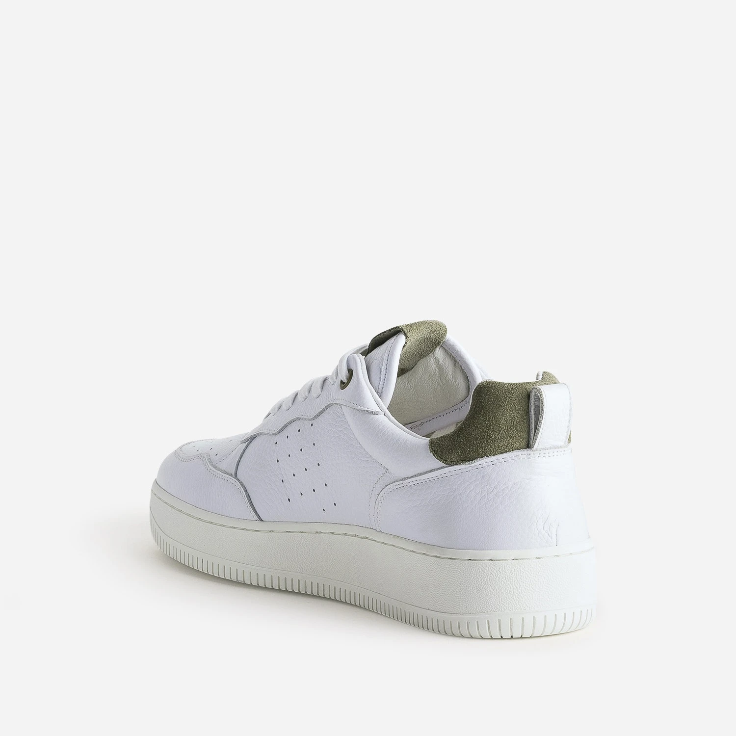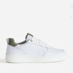 La tennis blanche ne se présente plus. Ancrée dans les tendances du moment, elle est confectionnée en cuir, sur la base d’un design classique, rythmé de perforations sur le dessus et les côtés et d’empiècements en cuir velours kaki sur l’étiquette et le contrefort. Un modèle homme à adopter sans attendre, avec un look décontracté dans les mêmes tons.