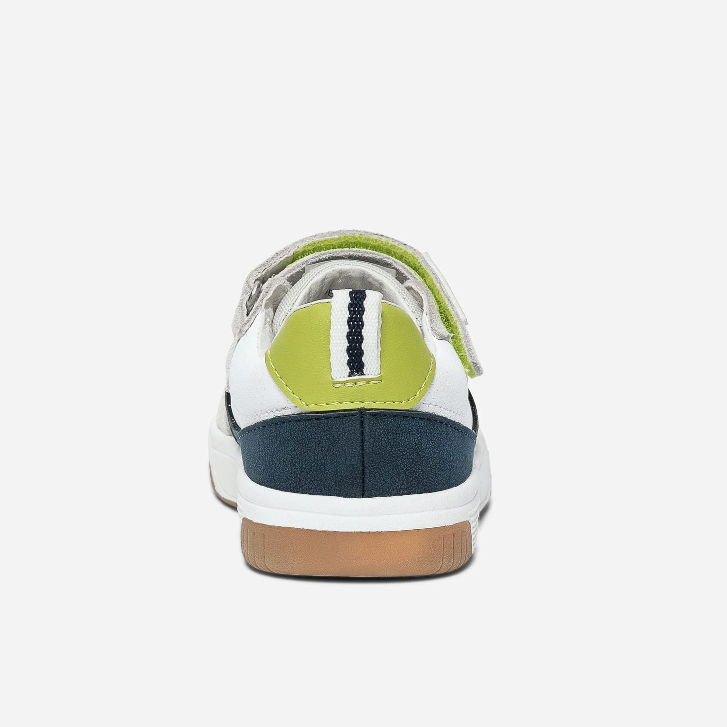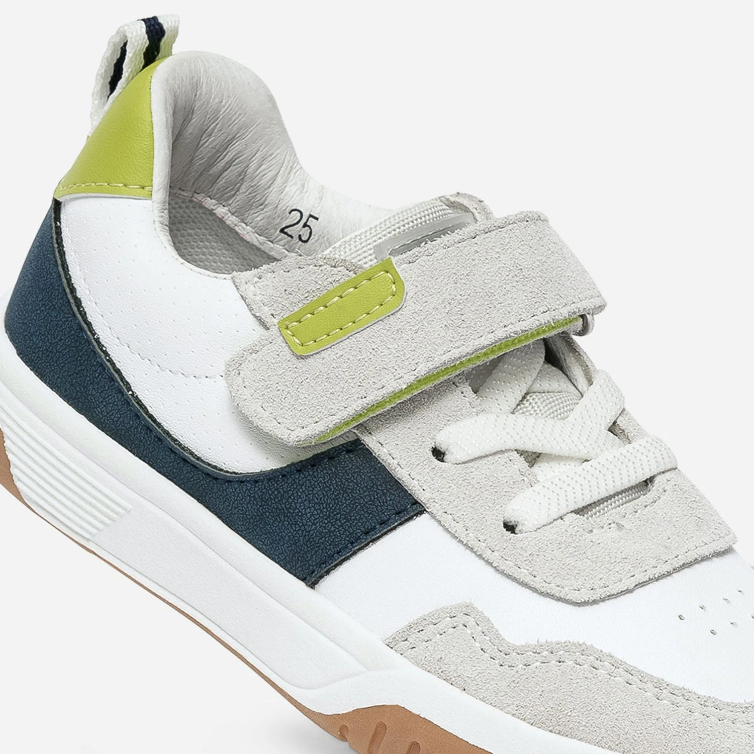 Le printemps annonce des journées plus longues et plus lumineuses. Le shoesing des garçons s’adapte avec cette nouvelle tennis. Confectionnée en 60% synthétique, 30% cuir et 10% polyester, elle présente une doublure bi matière et une première en cuir. Elle se démarque par un coloris blanc rythmé de touches gris clair, bleu marine et vert fluo. Elle se ferme par un lacet élastiqué, doublé d’un scratch. Un modèle qu’il n’est pas prêt de quitter !