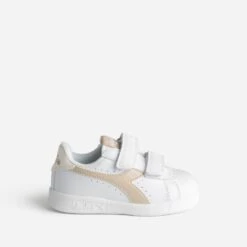 Cette tennis pour petite fille présente une tige en matière synthétique blanche, rythmée de perforations. Les côtés sont signés de lignes beiges striées, le contrefort, d’une touche écrue vernie, et l’étiquette de la languette, d’une variation beige clair. Elle se ferme par scratchs pour faciliter l’autonomie des mini-mains. Un modèle facile à porter au quotidien, avec un look sport ou plus branché.
