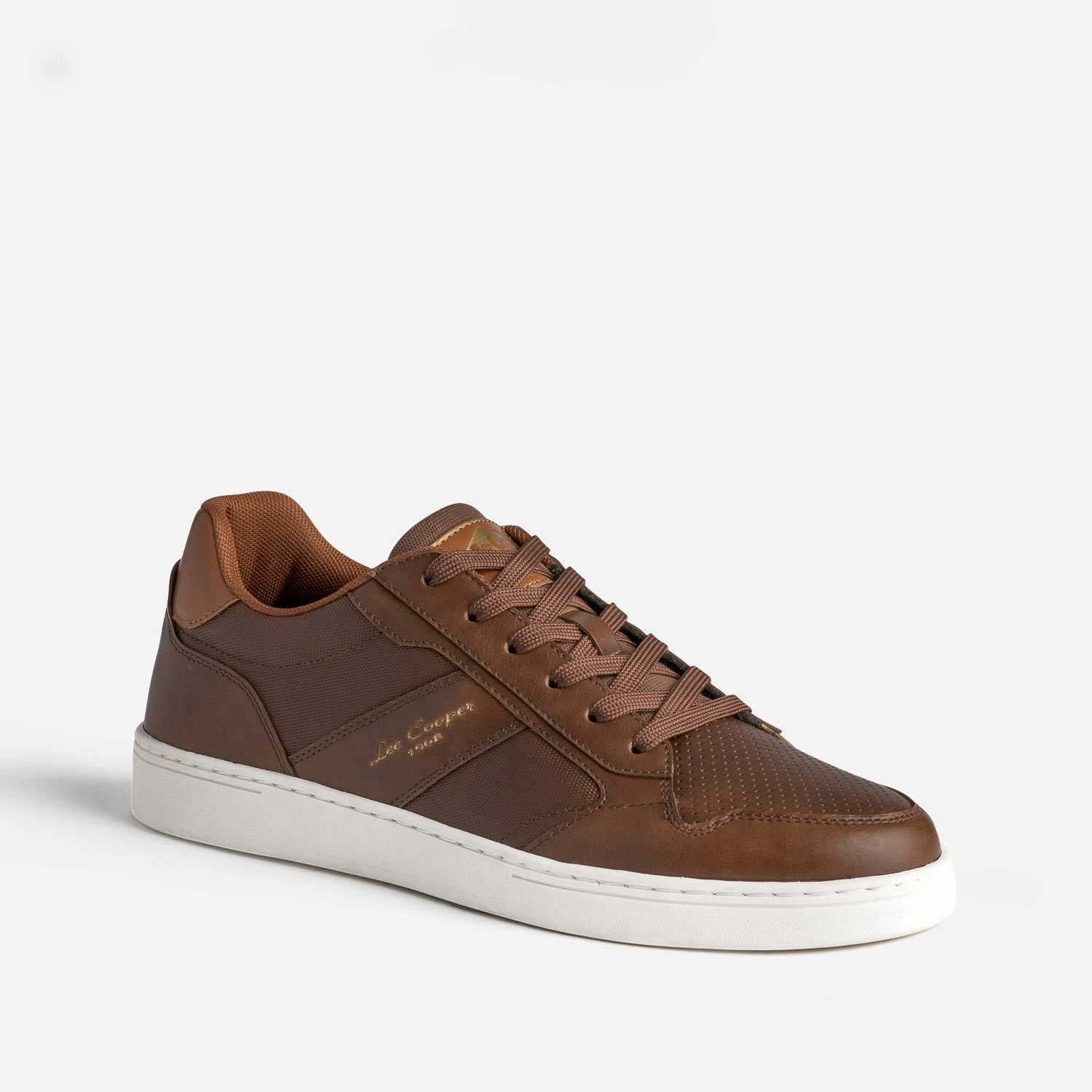 Confectionnée en matière synthétique cognac, cette tennis pour homme joue avec les détails pour gagner en style : perforations, embossage, contrefort camel. Un modèle relativement facile à porter, avec des tons de bleus ou de beige.