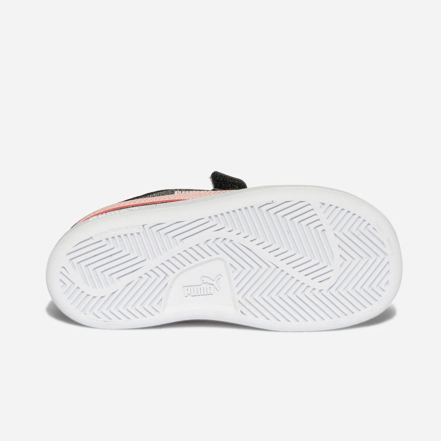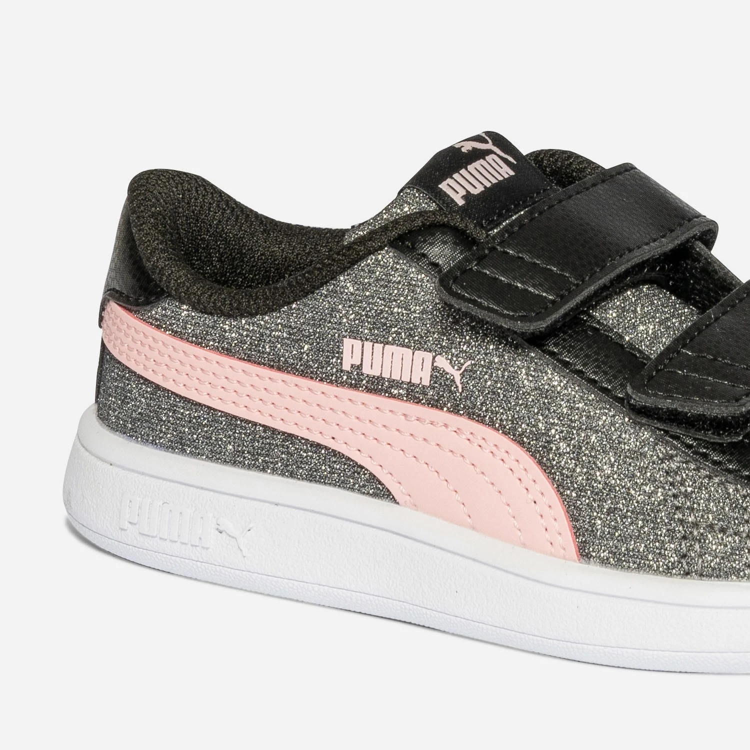 Le modèle Smash de PUMA est un vrai classique. Craquez pour la souplesse de son textile à effet pailleté et pour son coloris gris, marqué d’une bande identitaire et de logos roses. Fermée par deux scratchs noirs, cette tennis accompagne les petites filles, toute l’année, dans toutes leurs activités.