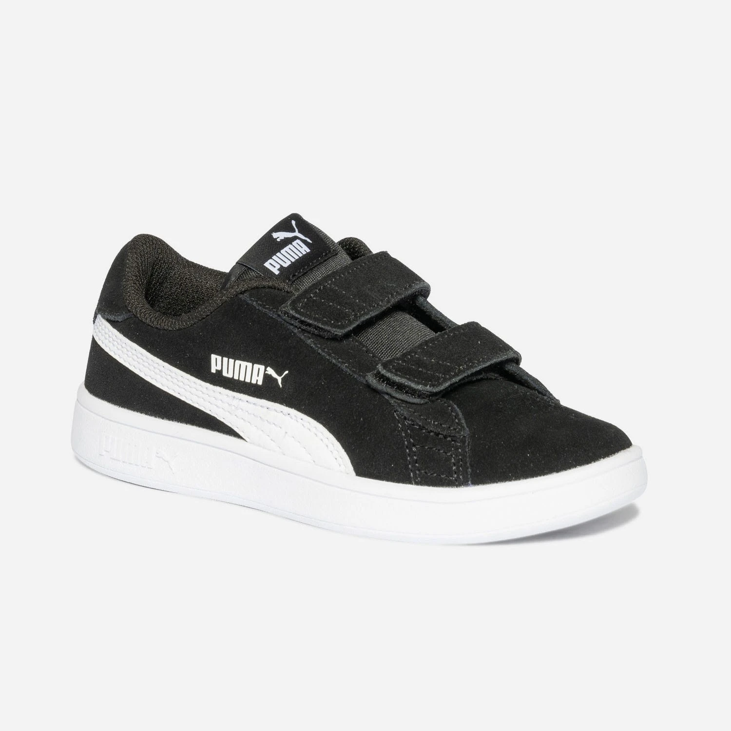 Inspiré des chaussures de tennis rétro, le modèle Smash est un incontournable des collections PUMA. Déclinée entièrement en 50% cuir et 50% cuir synthétique, cette tennis pour garçon associe le noir à des touches de blancs sur les logos. Équipée de deux scratchs placés sur le dessus, elle est pensée pour développer l’autonomie des petits et pour faciliter leur quotidien (et celui de leurs parents !).