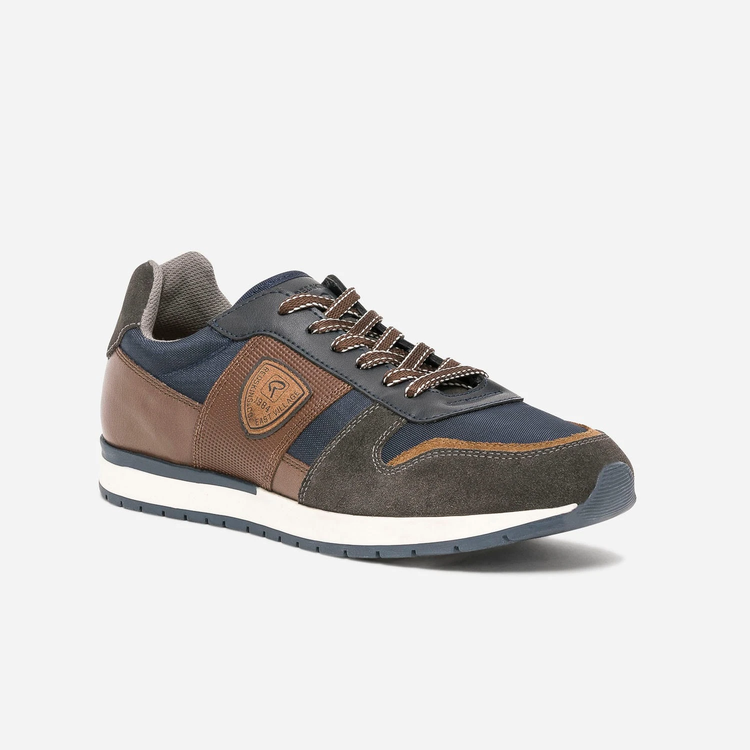 Osez un style plus sportswear avec cette tennis pour homme. Cuir lisse, cuir velours et mesh, touches de marine, de gris et de marron, elle associe des matières et des couleurs dans une belle harmonie parfaitement étudiée. Esprit vintage assumé, elle se porte de préférence, avec un look décontracté.