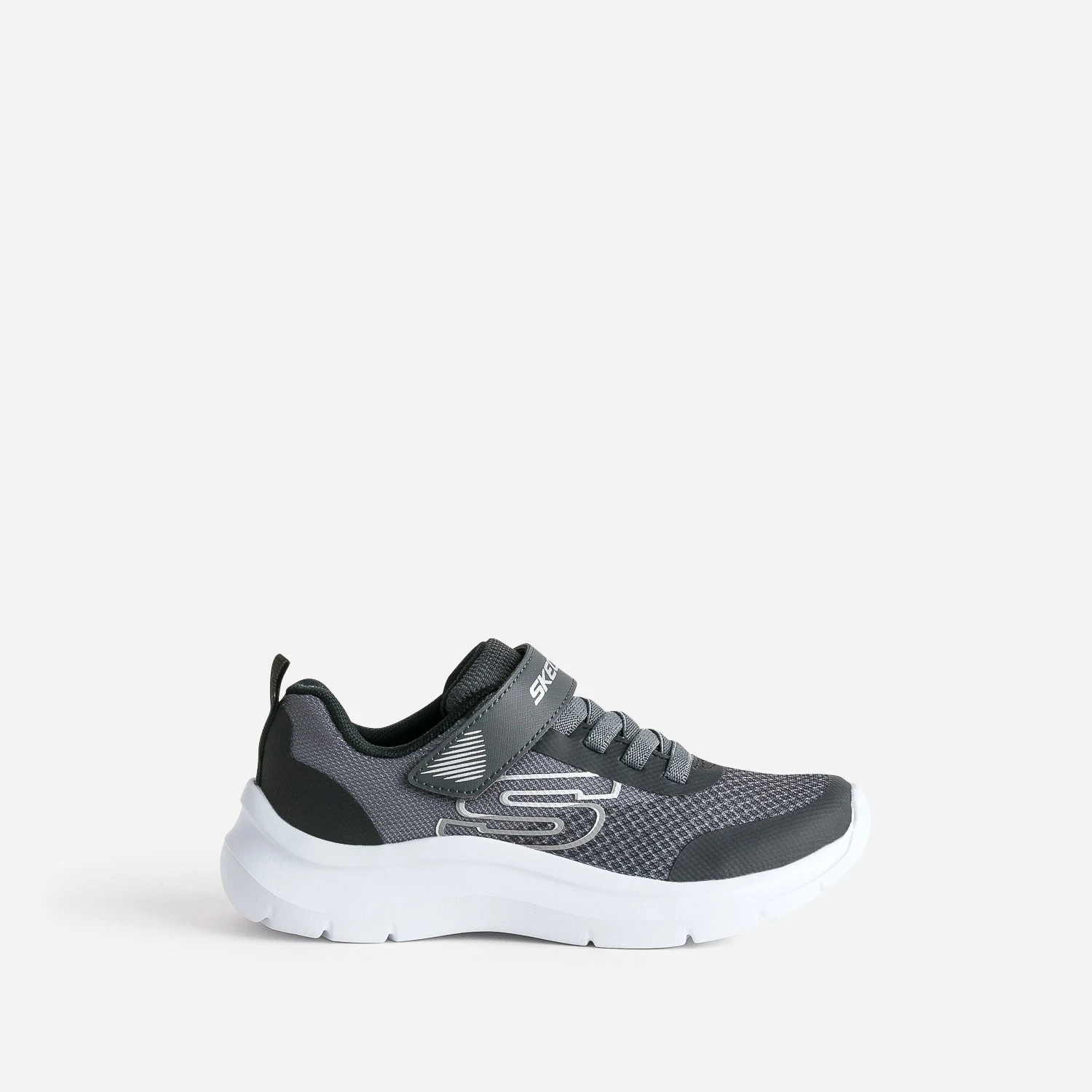 Lacet extensible, scratch de maintien, tige mix mesh et détails gomme, semelle intérieure rembourrée, semelle extérieure souple : tout est pensé pour le confort, avant tout. Noir et gris, les couleurs sombres mènent le jeu, sur ce modèle idéal au quotidien, lavable en machine.