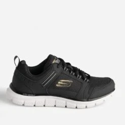 Cette tennis pour homme offre une meilleure flexibilité et plus de confort. Elle est dotée d’une tige en maille et cuir noirs, avec semelle intérieure Skechers Memory Foam™ coussinée. Un modèle idéal, notamment, pour les entraînements de fitness.