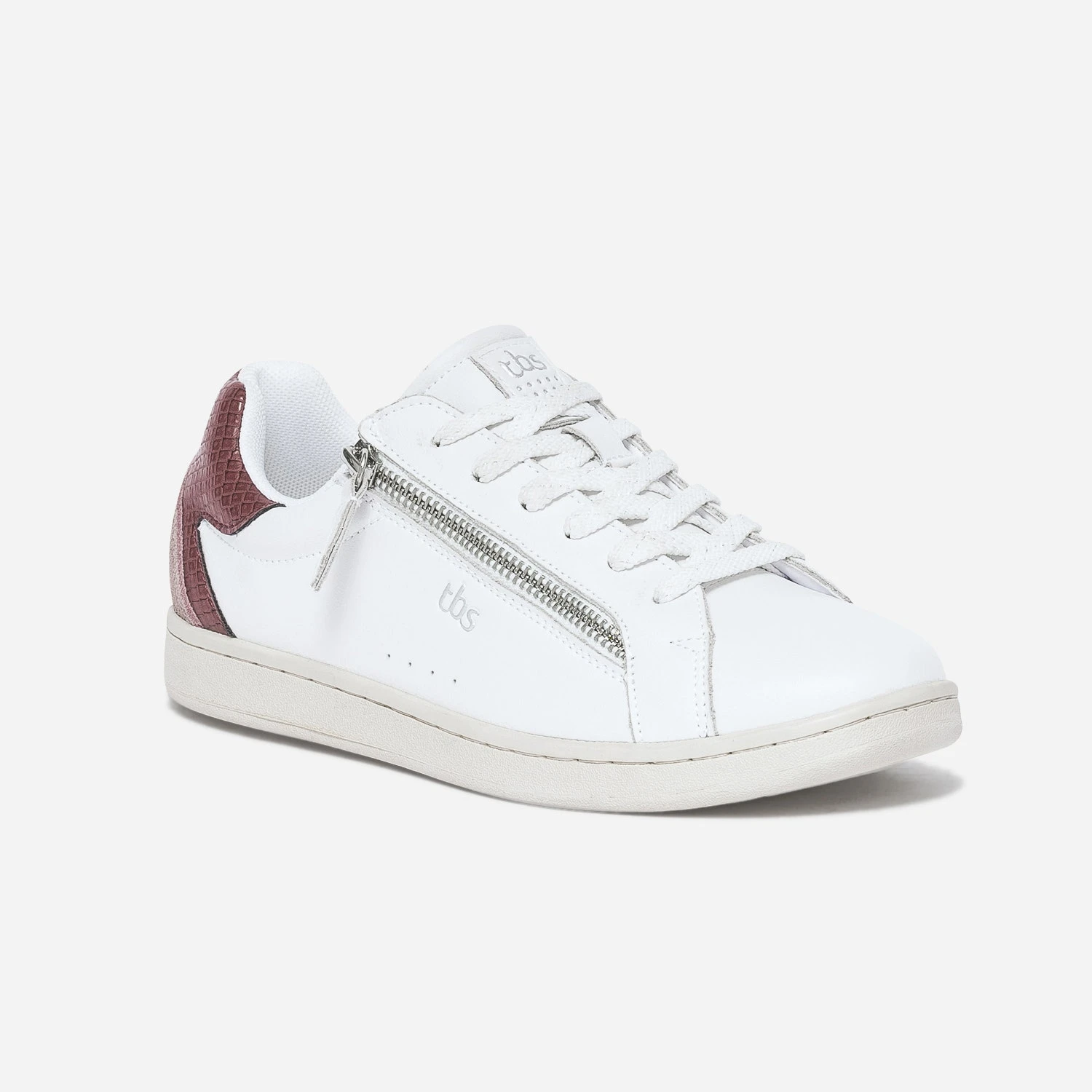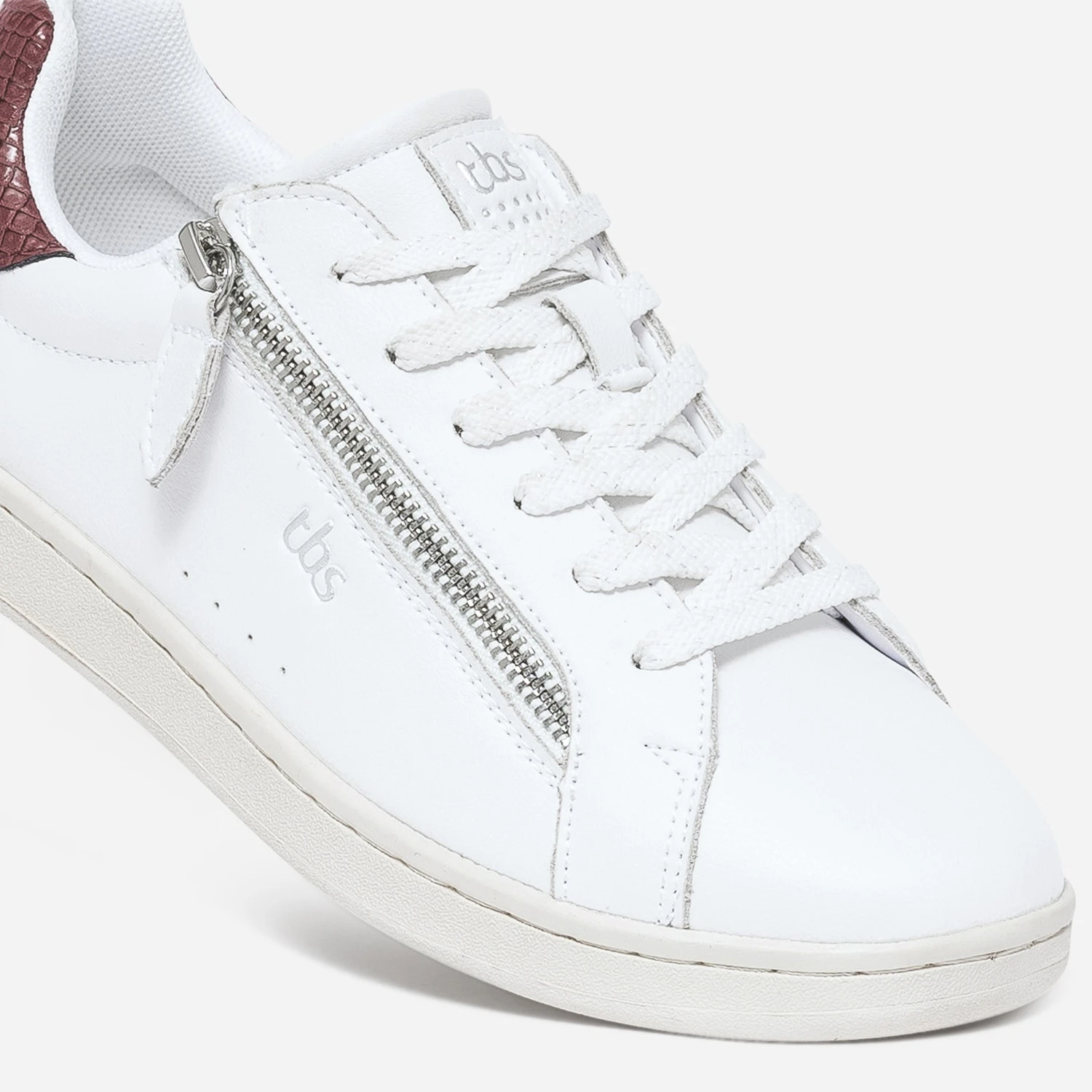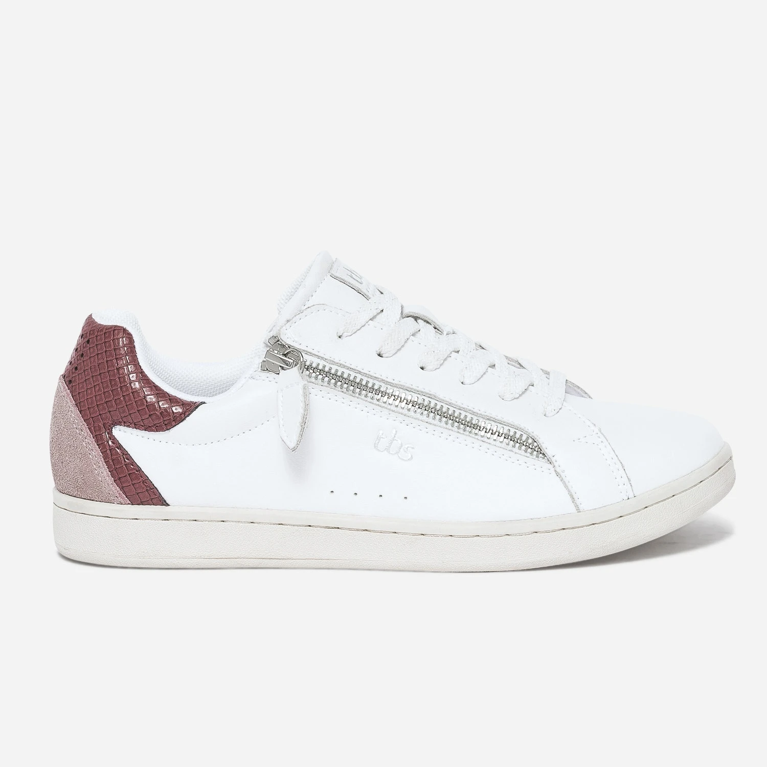 L’atout de cette tennis pour femme, c’est son zip ultra pratique, posé sur le côté, pour renforcer le laçage habituel. Modèle intemporel, il se décline en coloris blanc, sur un cuir lisse, animé, d’un empiècement bi matière rose suédé et bois de rose embossé effet python, sur le contrefort. Adoptez-la avec vos looks du quotidien.