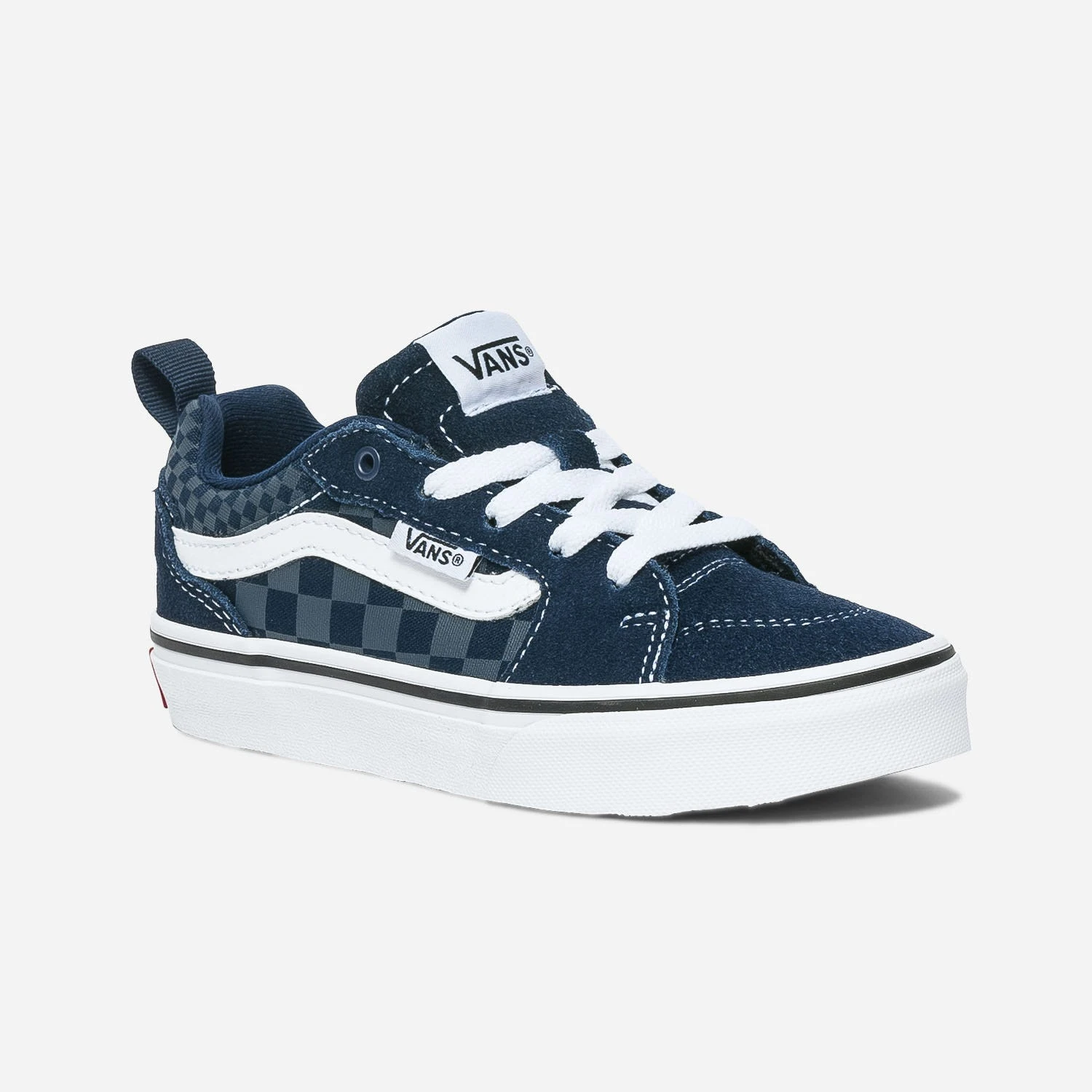 Plébiscitée, à l’origine, par les amateurs de skateboard, la marque VANS a dépassé les frontières du sport pour s’affirmer comme un produit mode. Découvrez cette tennis pour enfant version basse, associant le cuir velours et la toile à motif damier, dans un trio marine, gris et blanc, particulièrement élégant. Un modèle ultra tendance, qui va forcément leur plaire ! Jean et sweat vintage recommandés.