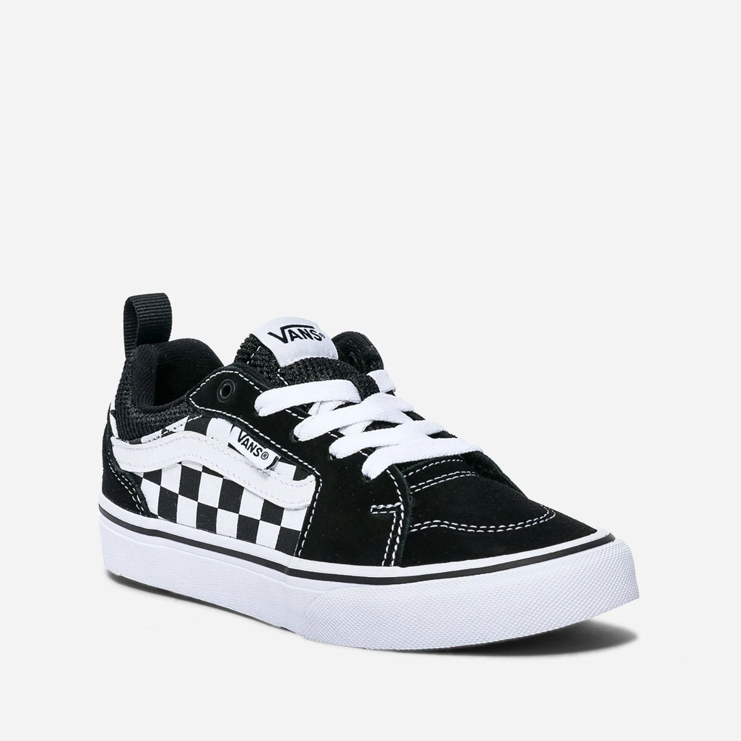 Plébiscitée, à l’origine, par les amateurs de skateboard, la marque VANS a dépassé les frontières du sport pour s’affirmer comme un produit mode. Découvrez cette version basse associant le cuir velours et la toile à motif damier, dans un duo noir et blanc, particulièrement élégant. Une tennis ultra tendance, qui va forcément lui plaire ! Jean mom et sweat vintage recommandés.