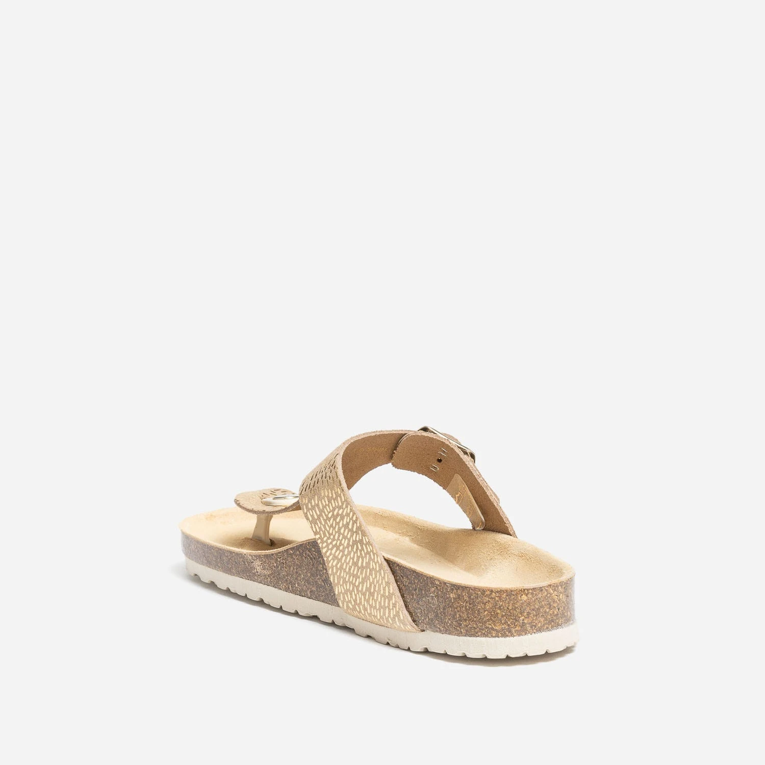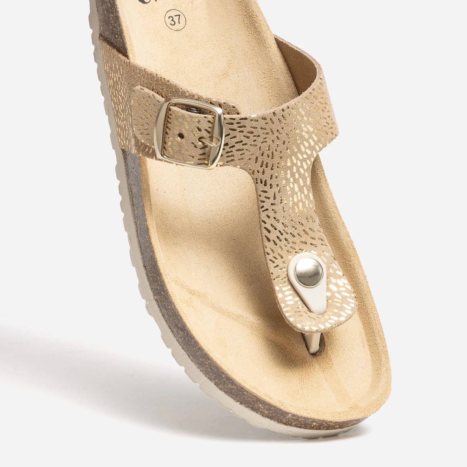 Pourquoi on aime cette tong ? Pour sa semelle anatomique, spécifiquement étudiée pour soulager le pied et offrir un confort optimal. Pour sa confection, en cuir velours beige foncé, rythmé par des détails dorés, sur les brides et en croûte de cuir marron sur la semelle. Elle signe un style casual largement plébiscité par les modeuses. L’essayer, c’est l’adopter !
