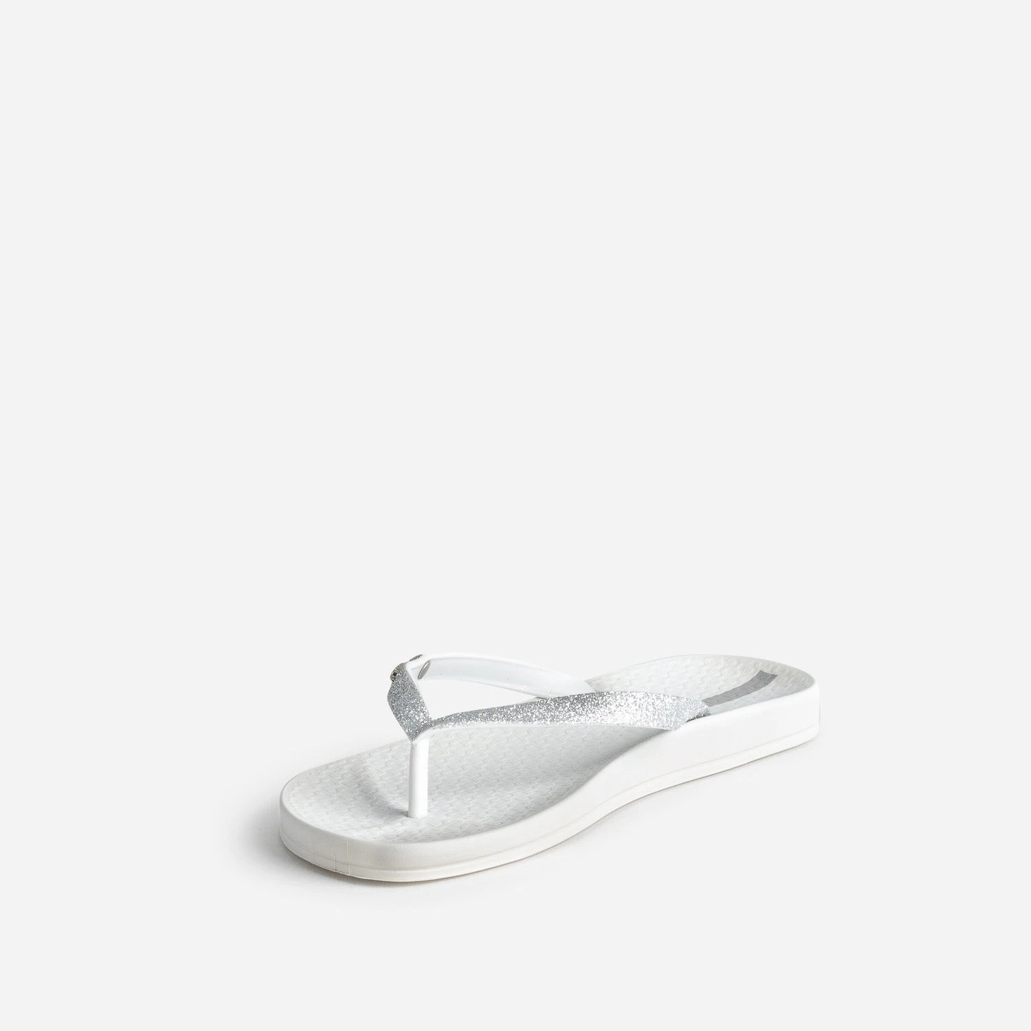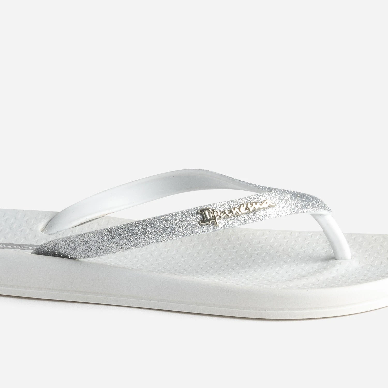 Cette tong pour femme se décline en coloris gris clair, assez neutre. Son atout ? Des brides pailletées argentées. Un modèle parfait pour un twist fun et chic, avec toutes les tenues d’été.