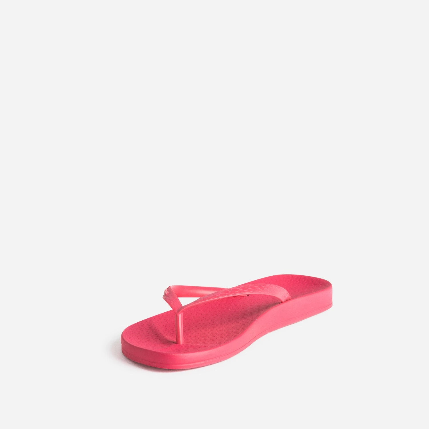 La chaussure des week-ends prolongés et des vacances à proximité de la plage ou de la piscine, c’est la tong, sans discuter. Déclinée dans un coloris rose fuchsia vif, elle se démarque par un embossage à motif graphique, sur les brides et la semelle, en écho à celui du remblai de la plage d’Ipanema. Un modèle idéal pour s’évader illico !